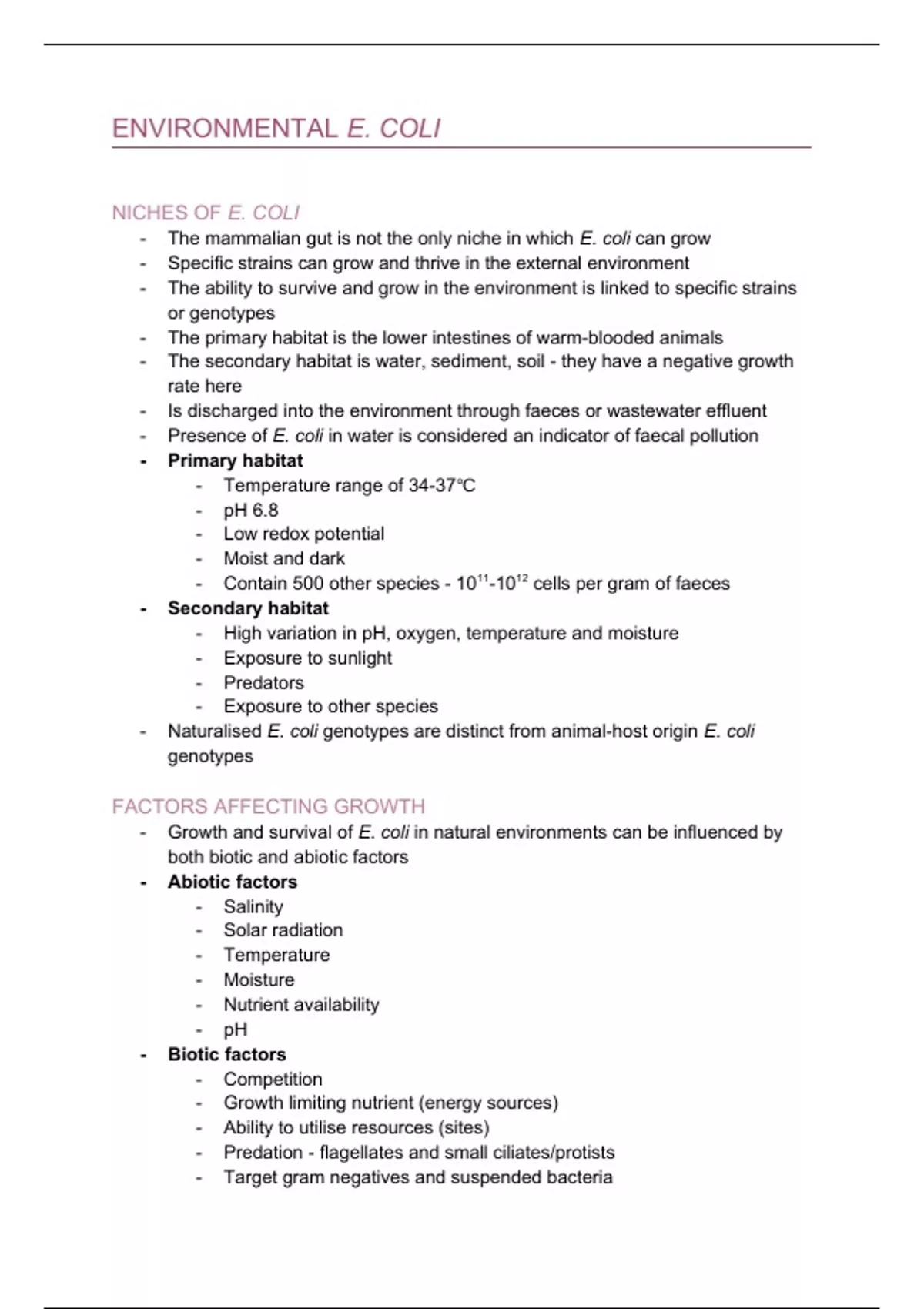 - Is the most important factors influencing E. coli survival and growth