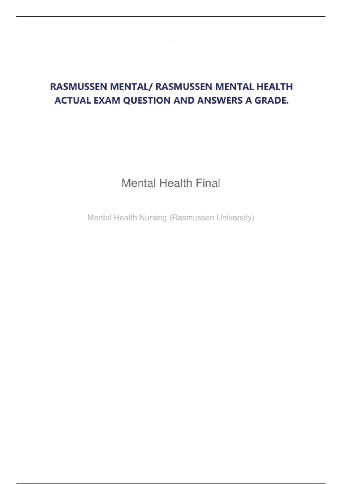RASMUSSEN MENTAL/ RASMUSSEN MENTAL HEALTH ACTUAL EXAM QUESTION AND ANSWERS A GRADE.