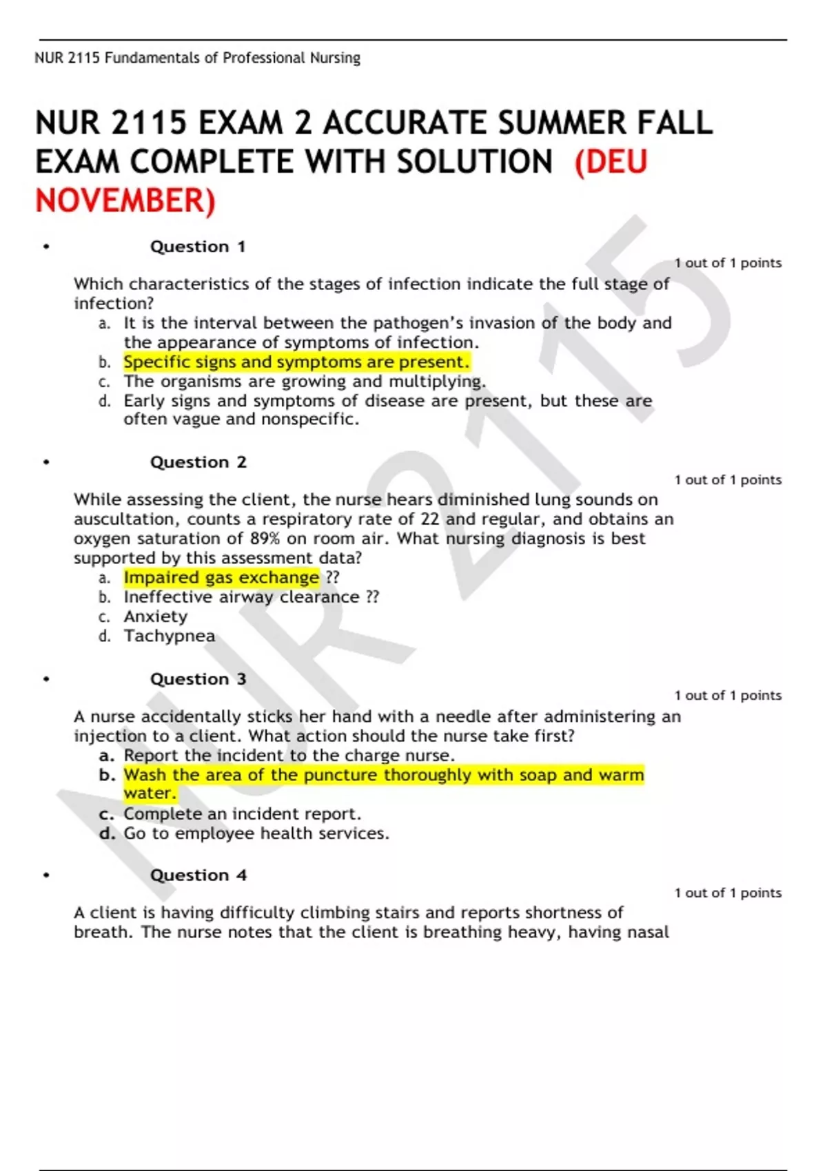 nur 2115 exam 2 accurate summer fall exam complete