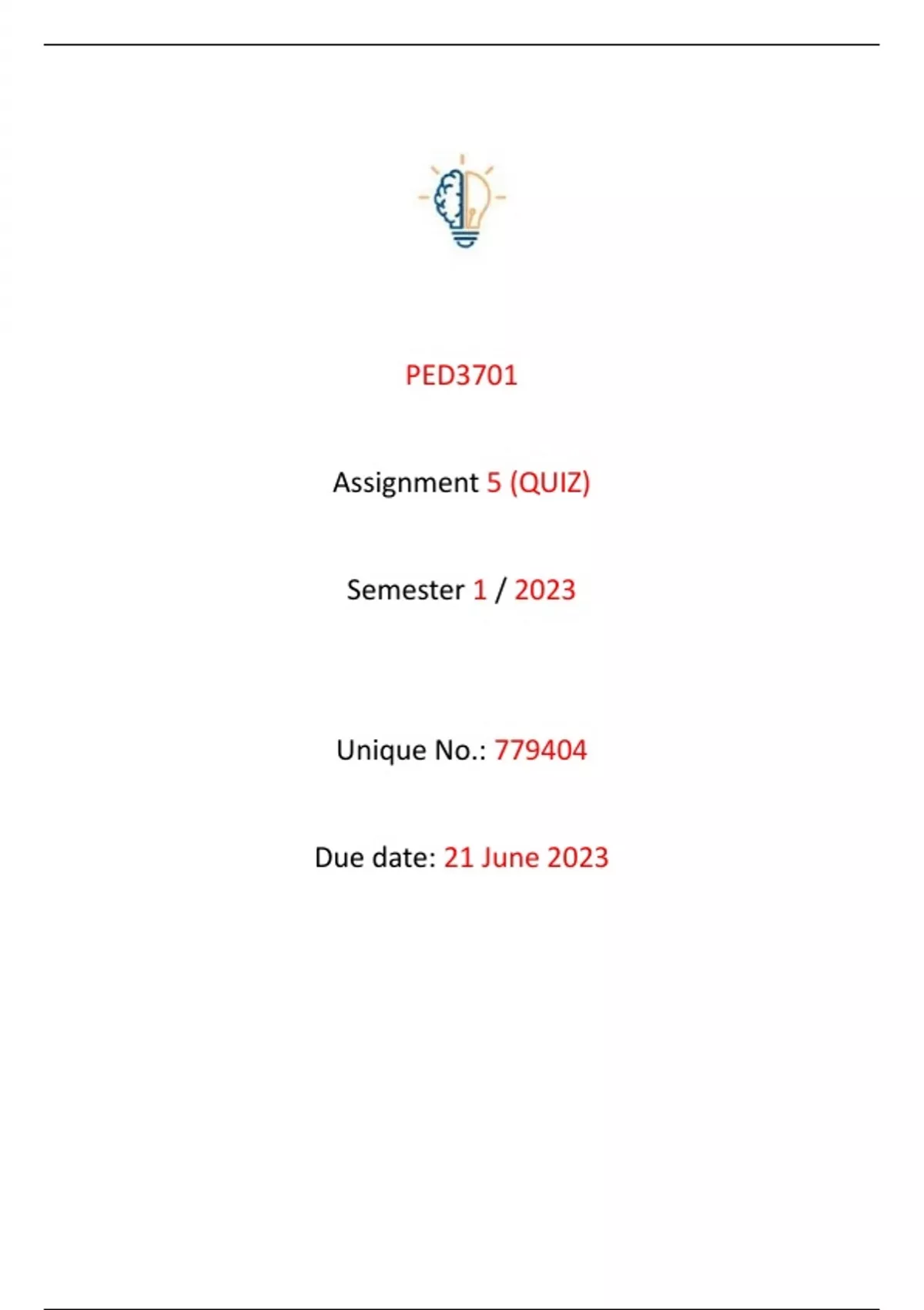 PED3701 Assignment 5 QUIZ 2023 [Unique No.: 779404]