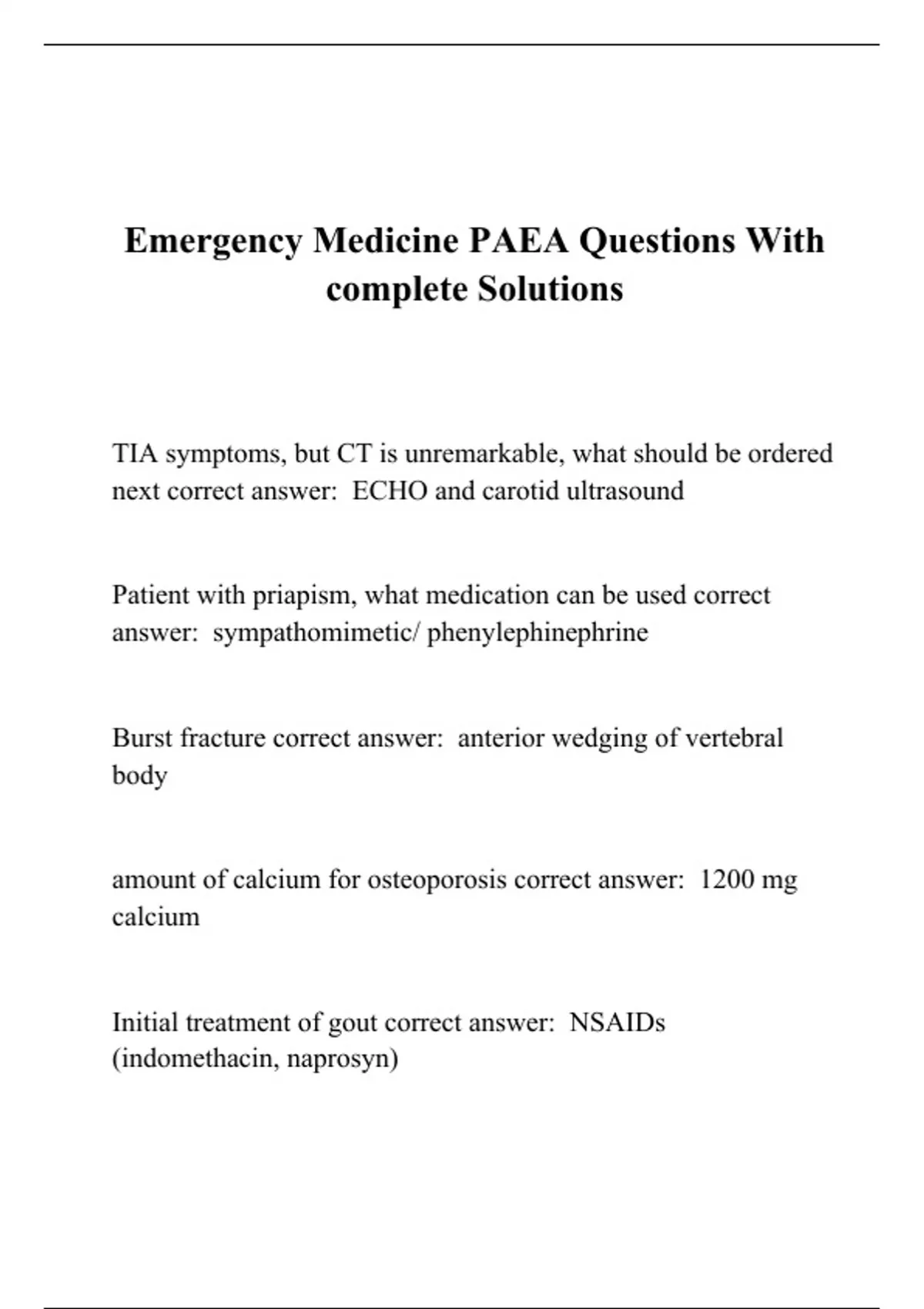 Emergency Medicine PAEA Questions With complete Solutions