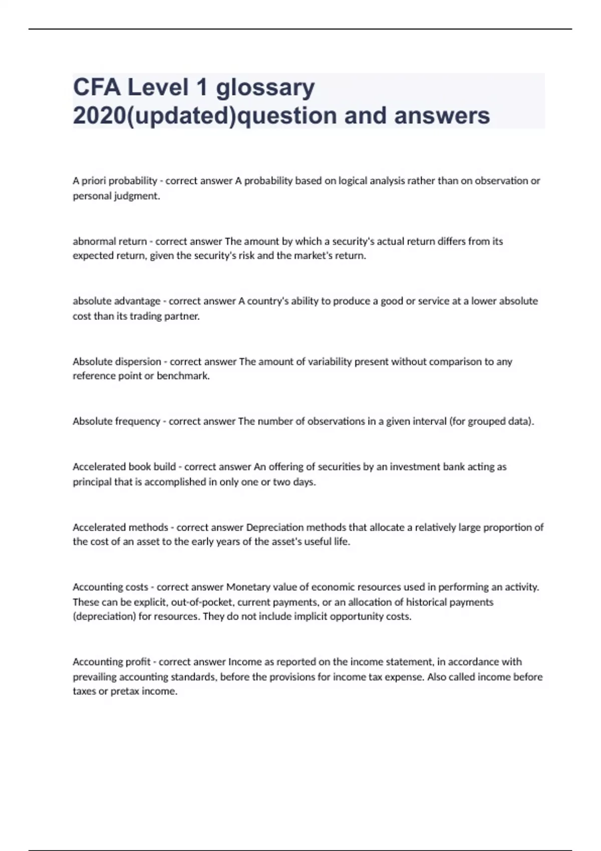 Amortisation - correct answer The process of allocating the cost of intangible long-term assets having a