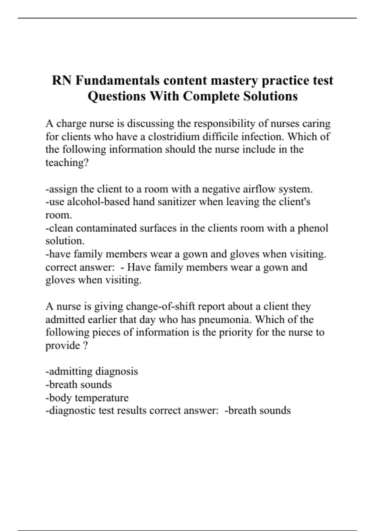 RN Fundamentals content mastery practice test Questions With Complete Solutions