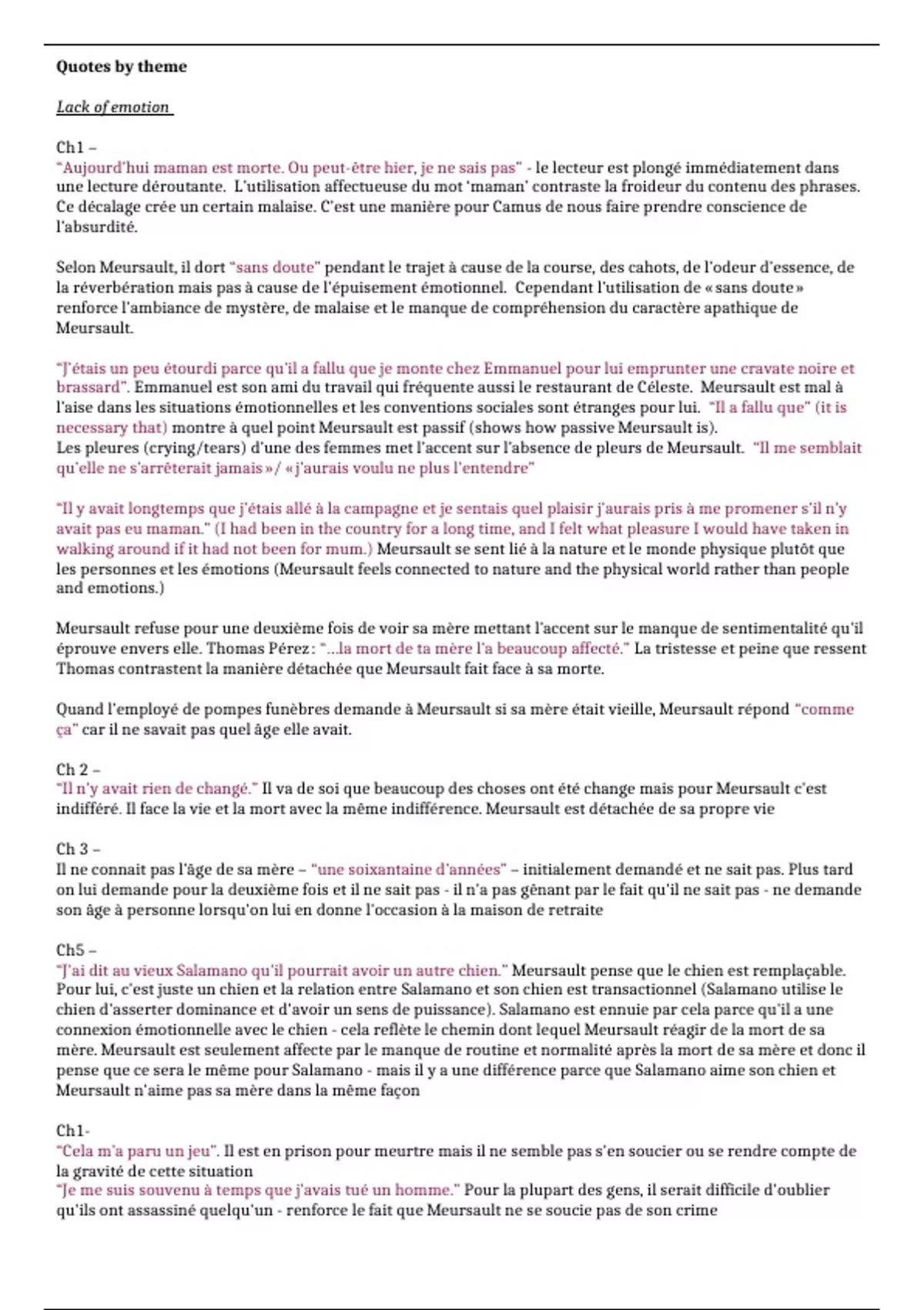 walking around if it had not been for mum.) Meursault se sent lié à la nature et le monde physique plutôt que