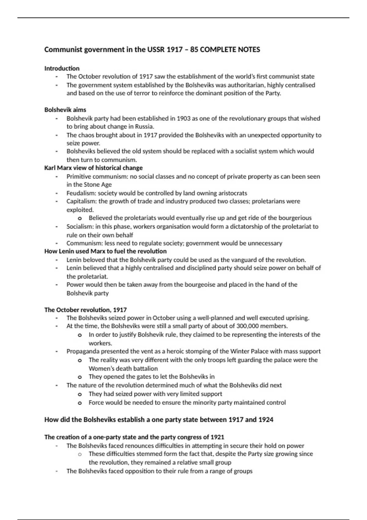 Communist government in the USSR 1917 – 85 COMPLETE NOTES