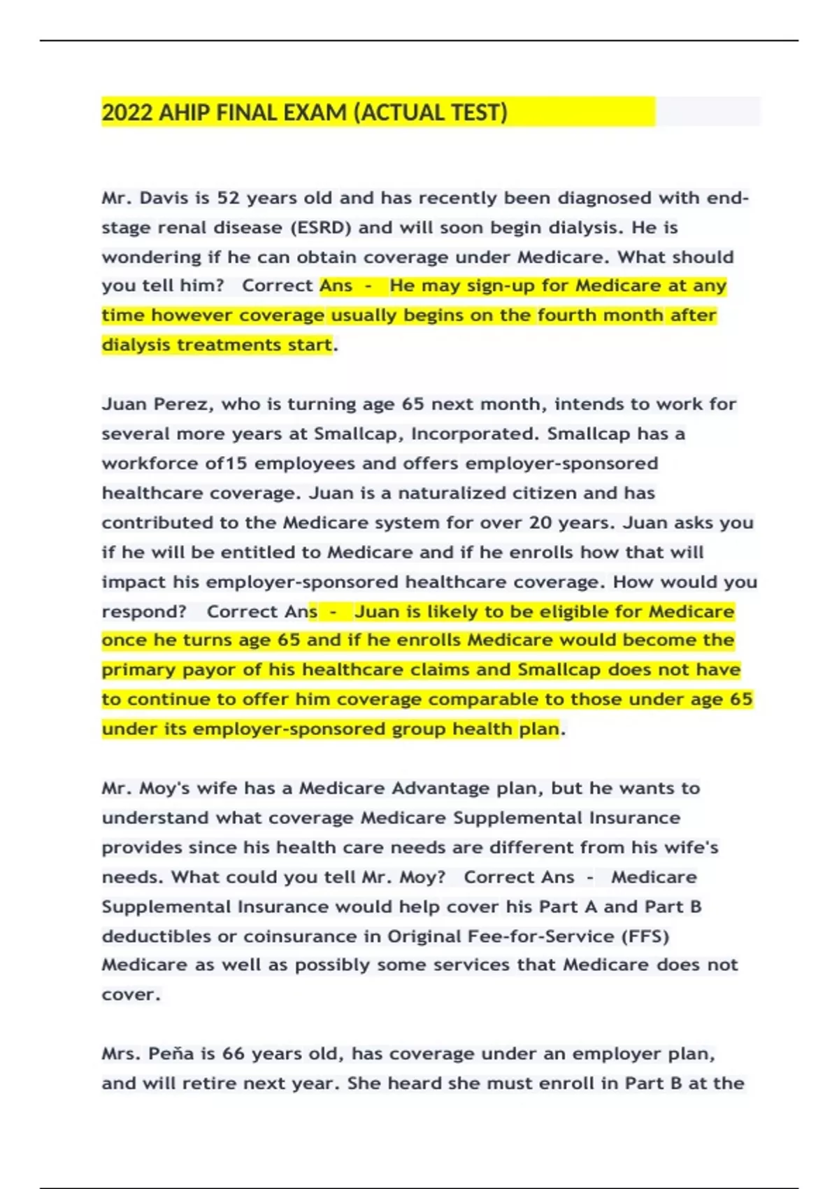 AHIP Final Exam Test Questions and Answers (2022/2023) (Verified Answers)