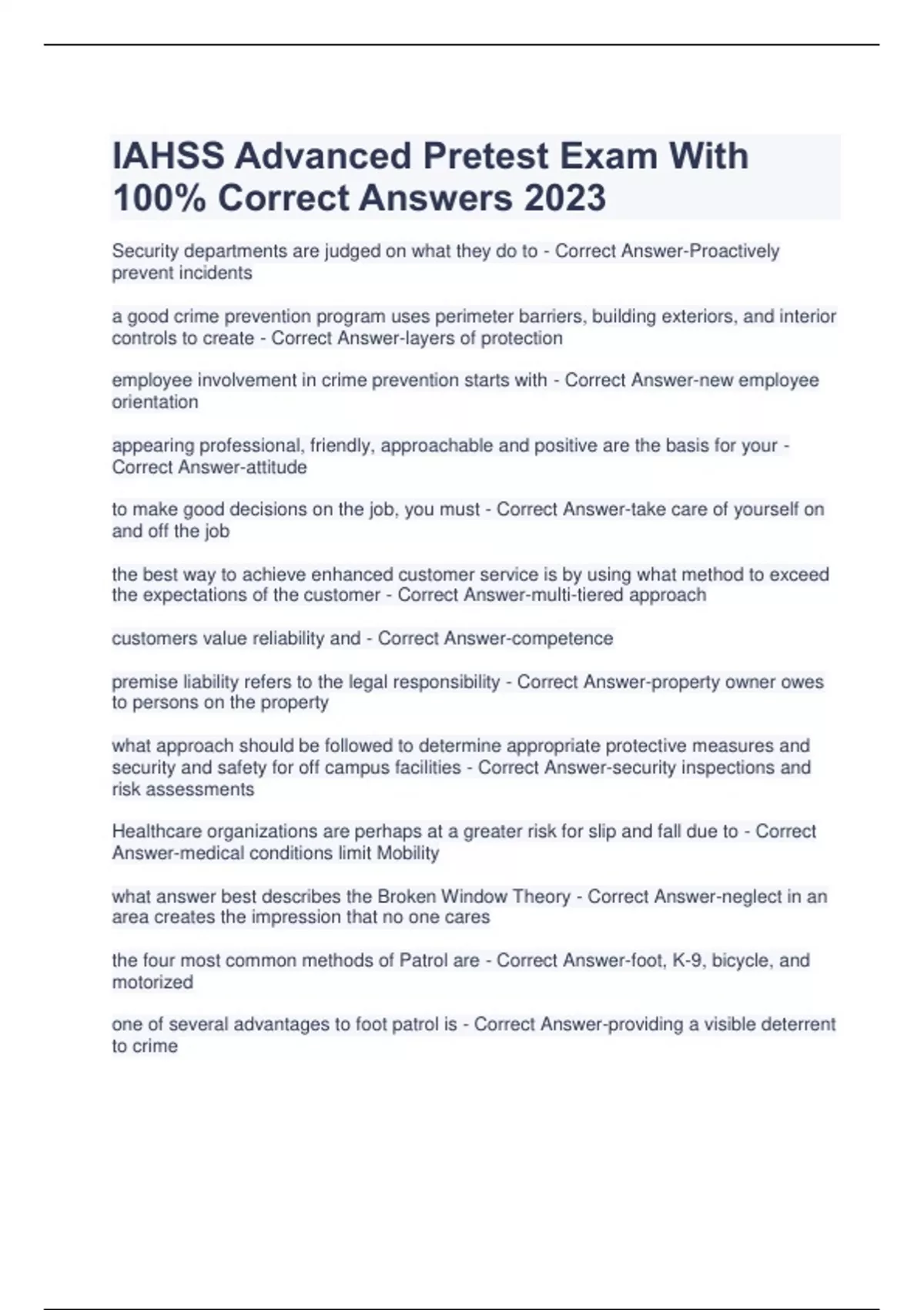 IAHSS Advanced Pretest Exam With 100% Correct Answers 2023