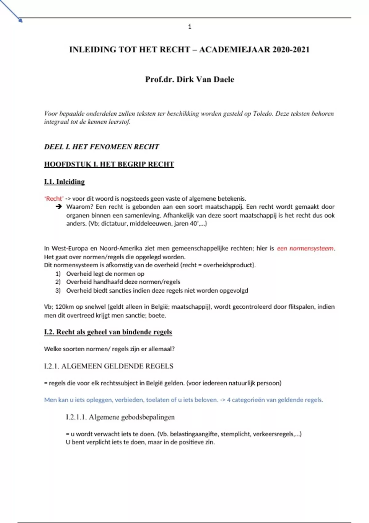 INLEIDING TOT HET RECHT – ACADEMIEJAAR 2020-2021