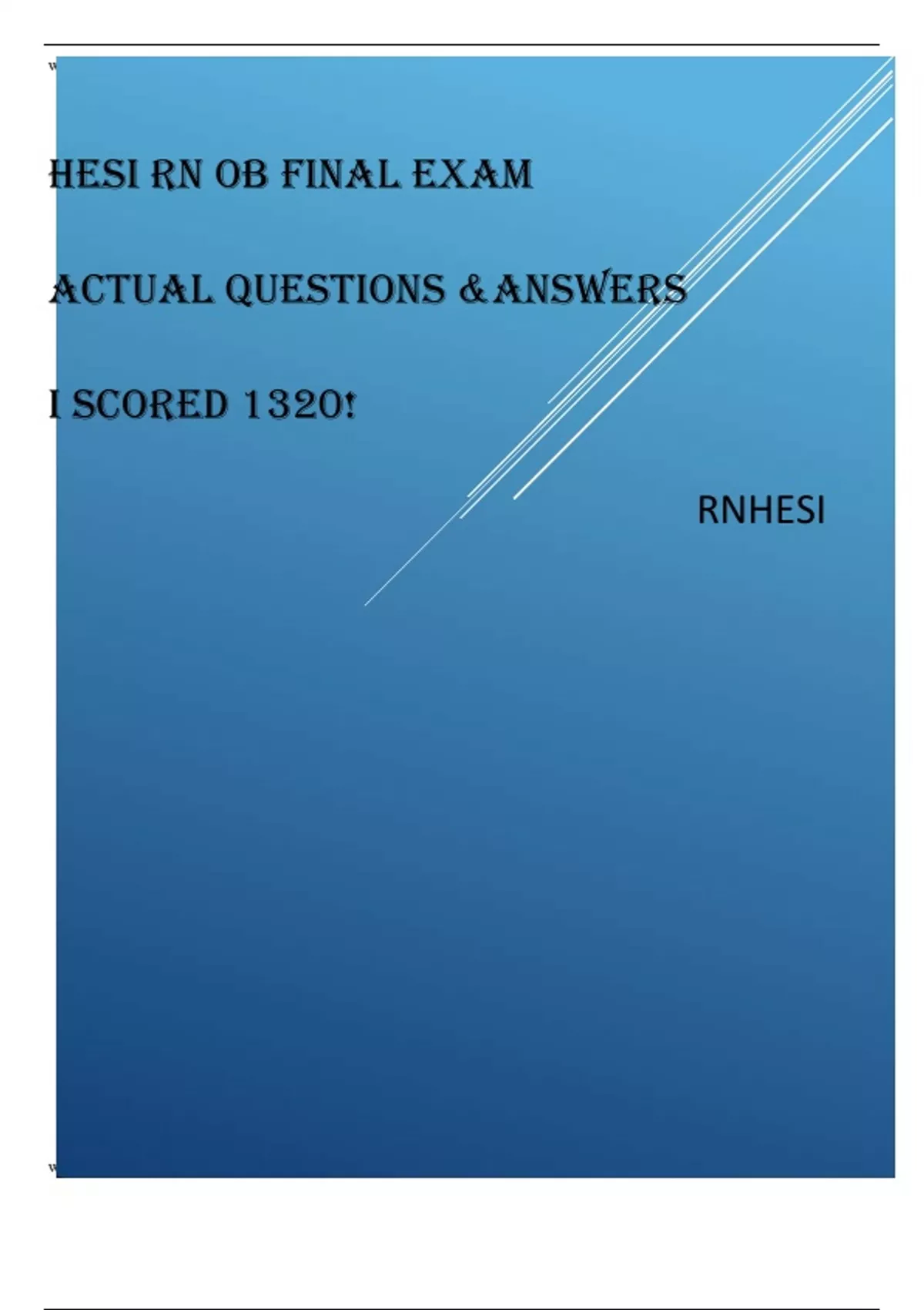 HESI RN OB FINAL EXAM ACTUAL QUESTIONS &ANSWERS I scored 1320!