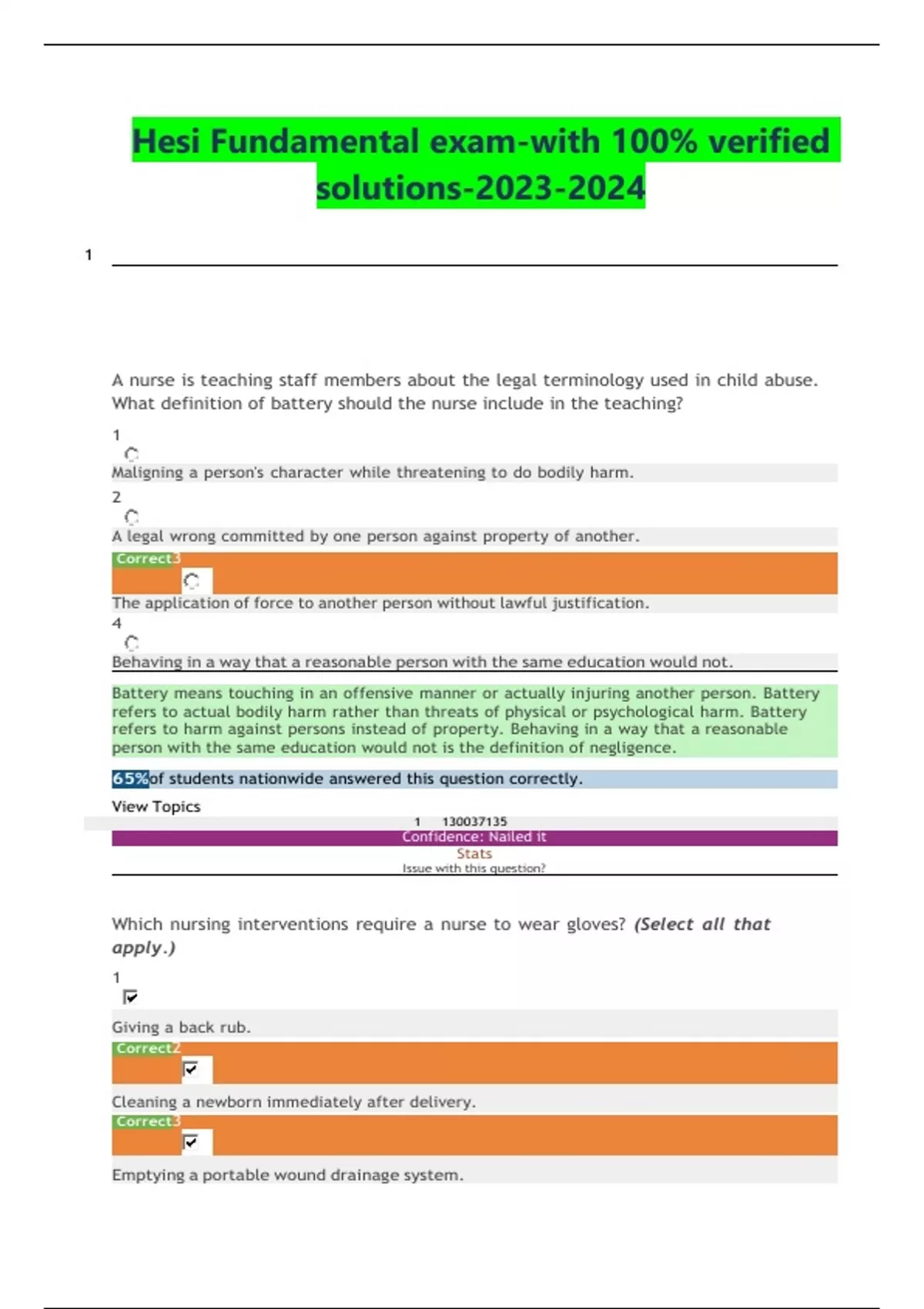 Hesi Fundamental exam-with 100% verified solutions-