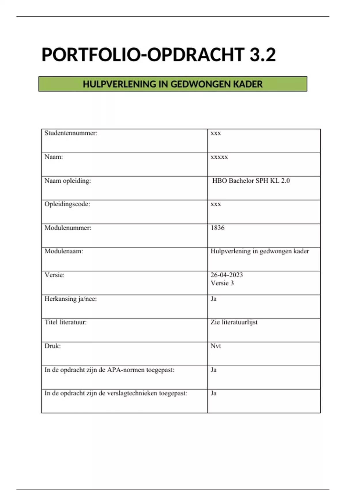 Opleidingscode: xxx