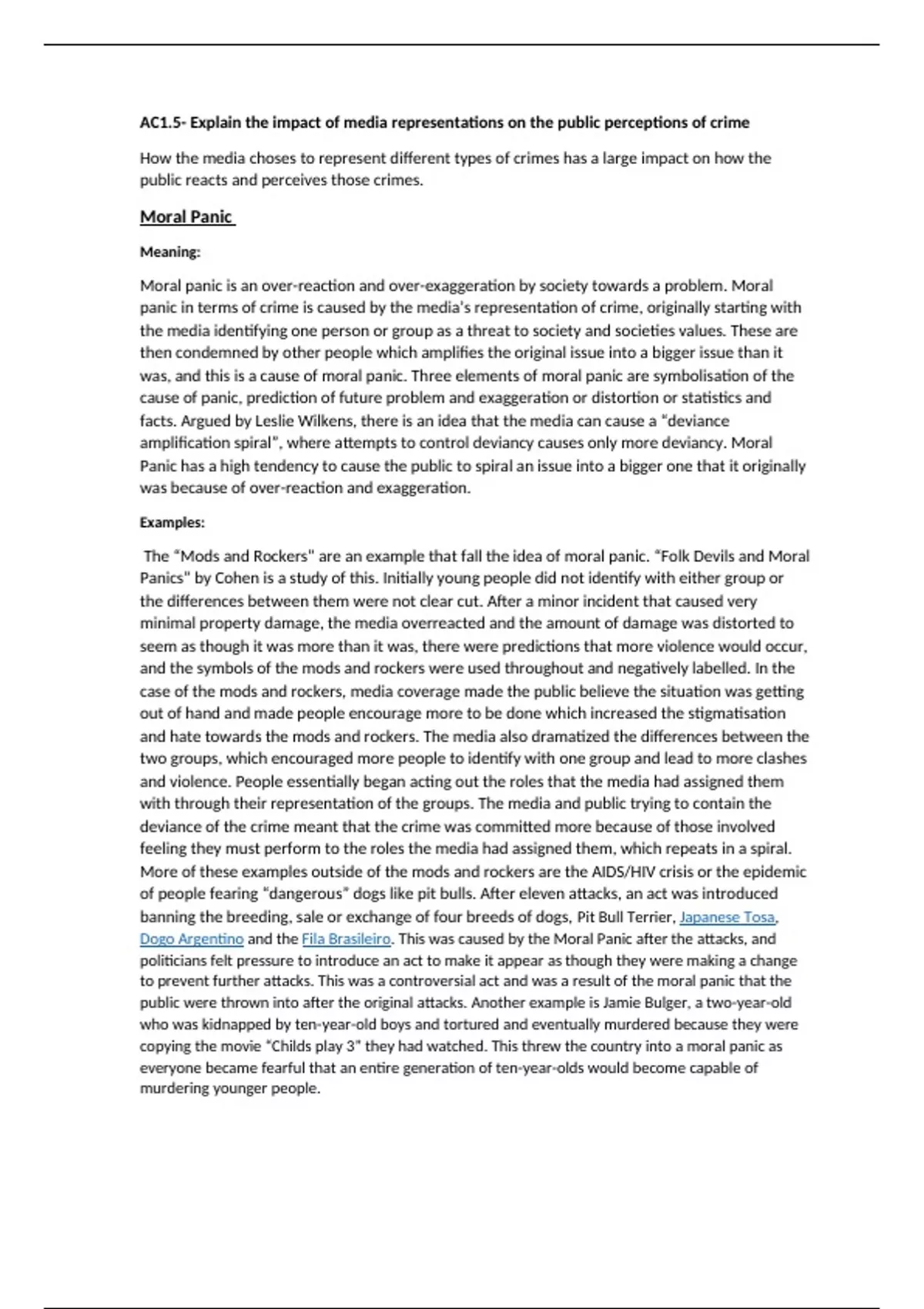 moral panic. In the example of the mods and rockers again, media representations of them lead