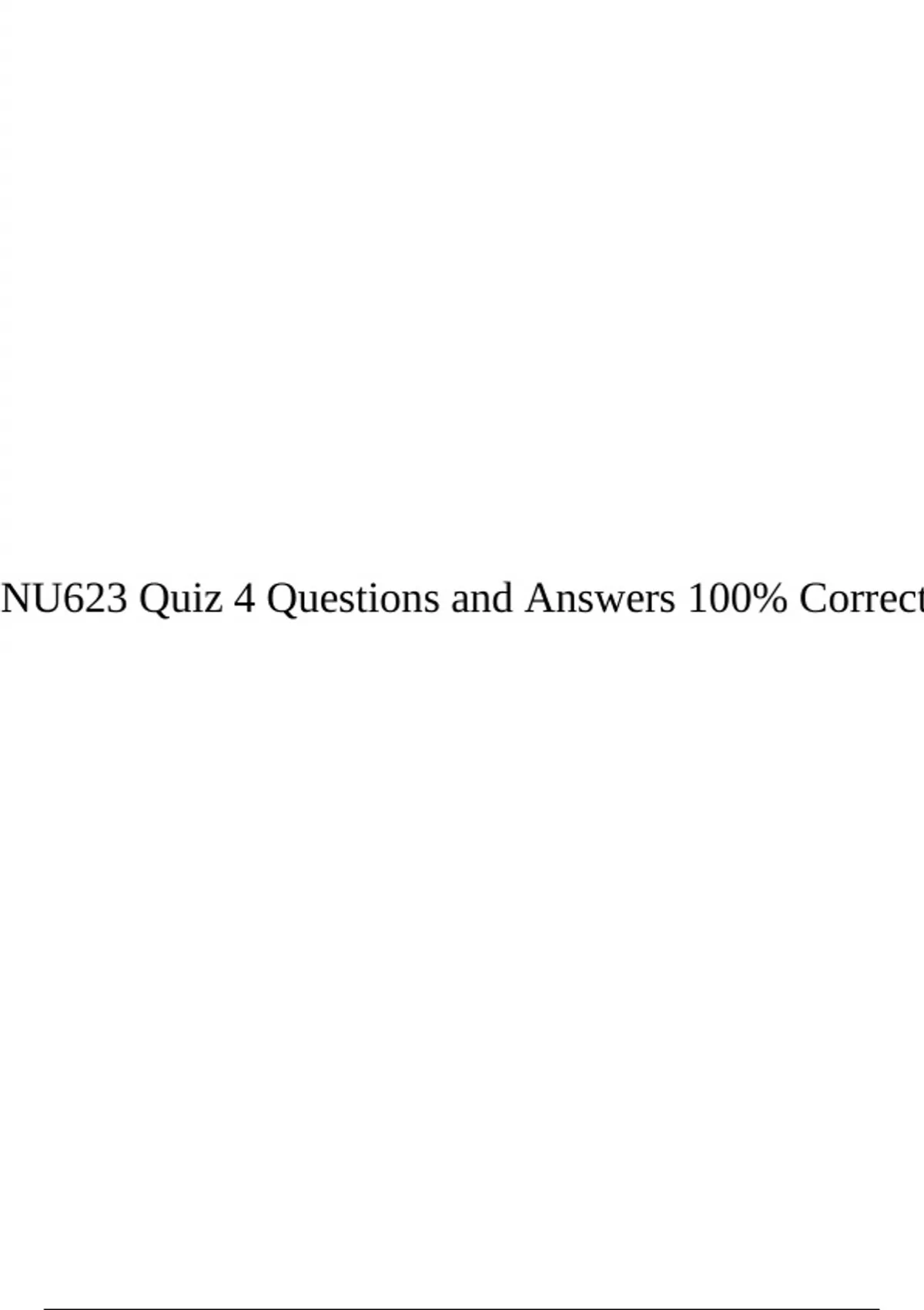 NU623 Quiz 4 Questions and Answers 100% Correct.