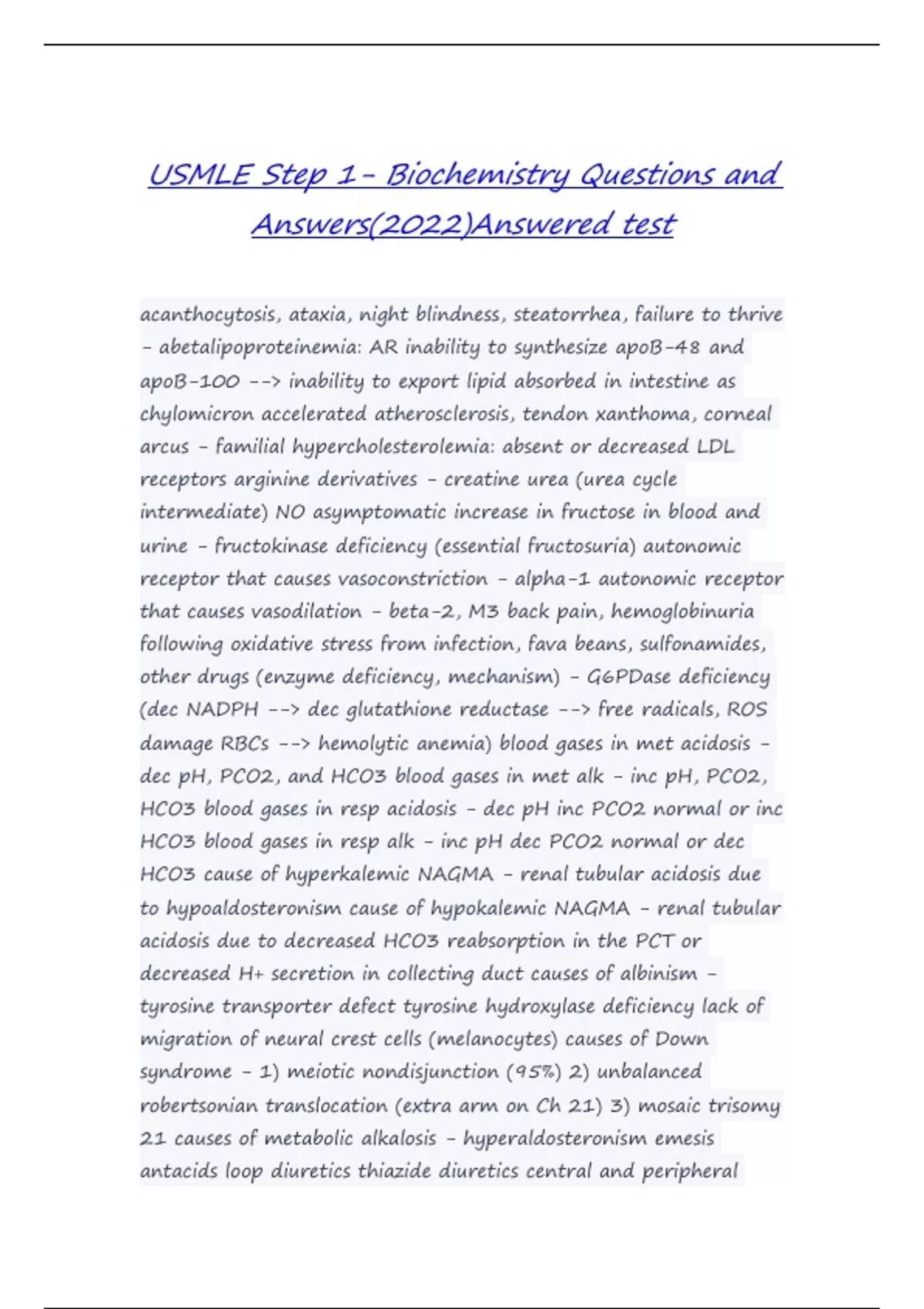 USMLE Step 1 Rapid Review Questions and Answers