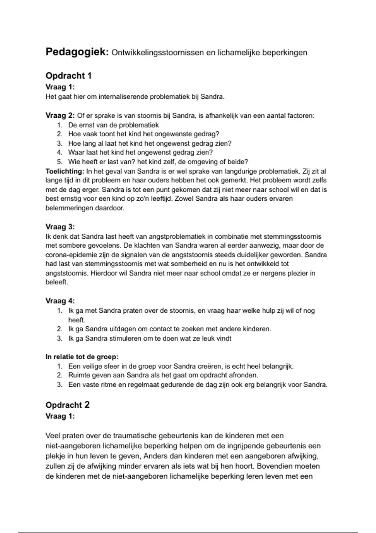 Vraag 2: Of er sprake is van stoornis bij Sandra, is afhankelijk van een aantal factoren: