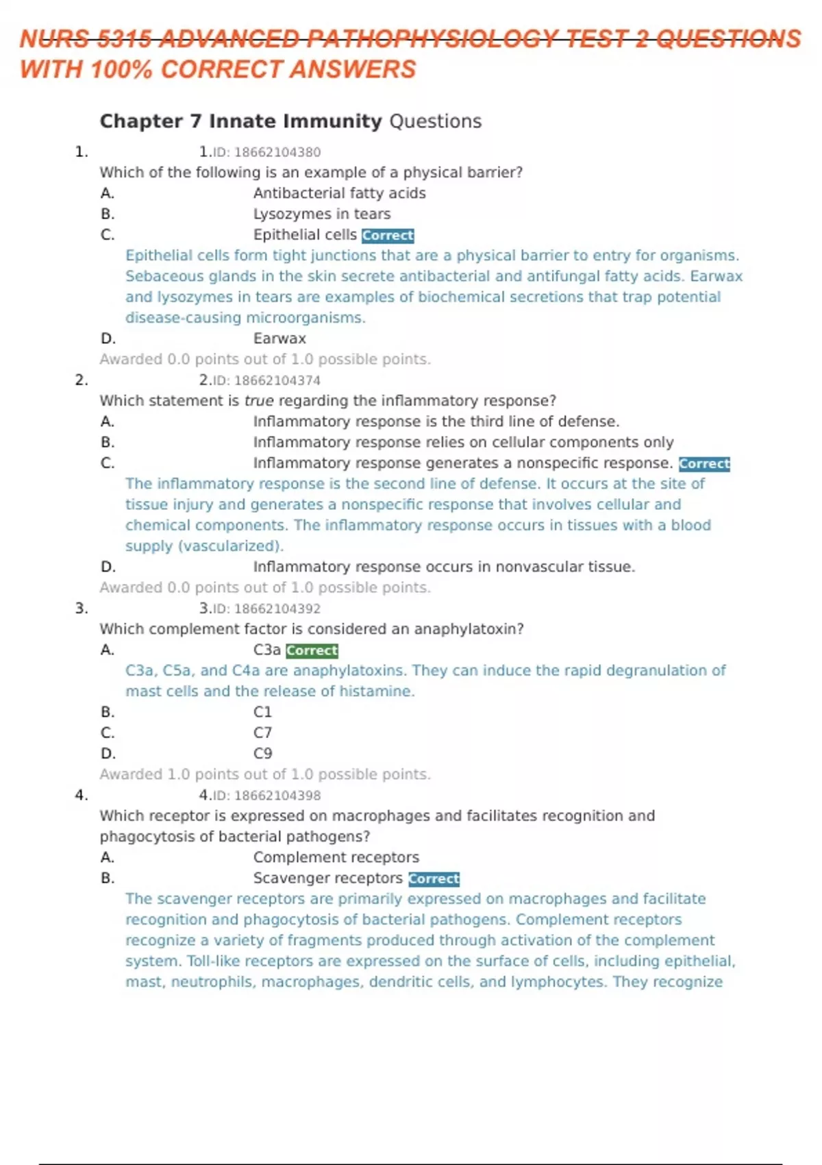 NURS 5315 ADVANCED PATHOPHYSIOLOGY TEST 2 QUESTIONS WITH 100% CORRECT ANSWERS