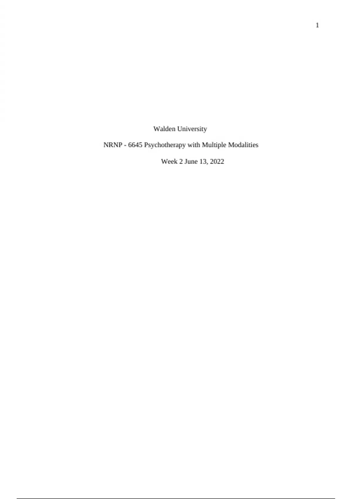 Walden University NRNP - 6645 Psychotherapy with Multiple Modalities