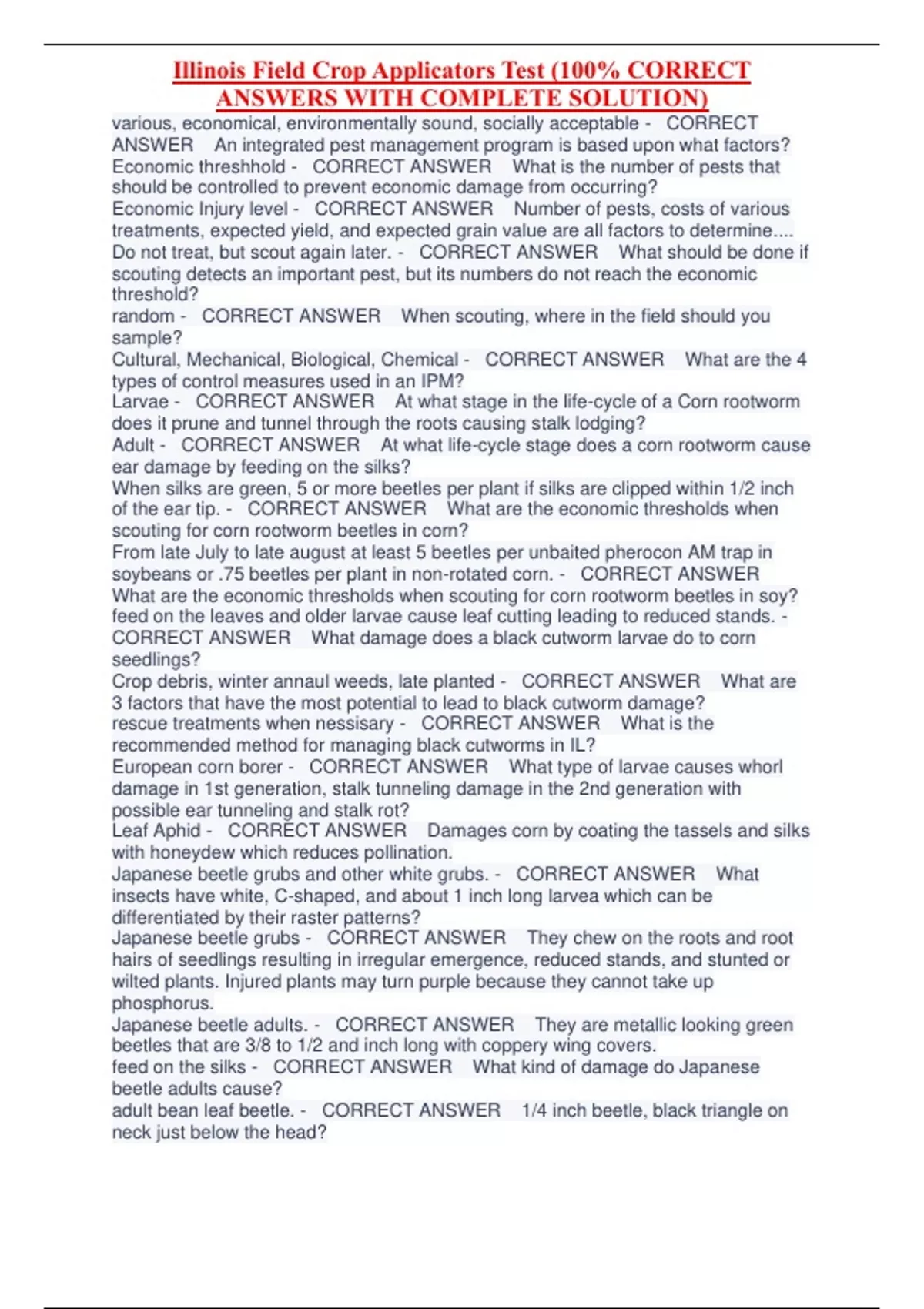 Illinois Field Crop Applicators Test (100% CORRECT ANSWERS WITH COMPLETE SOLUTION)