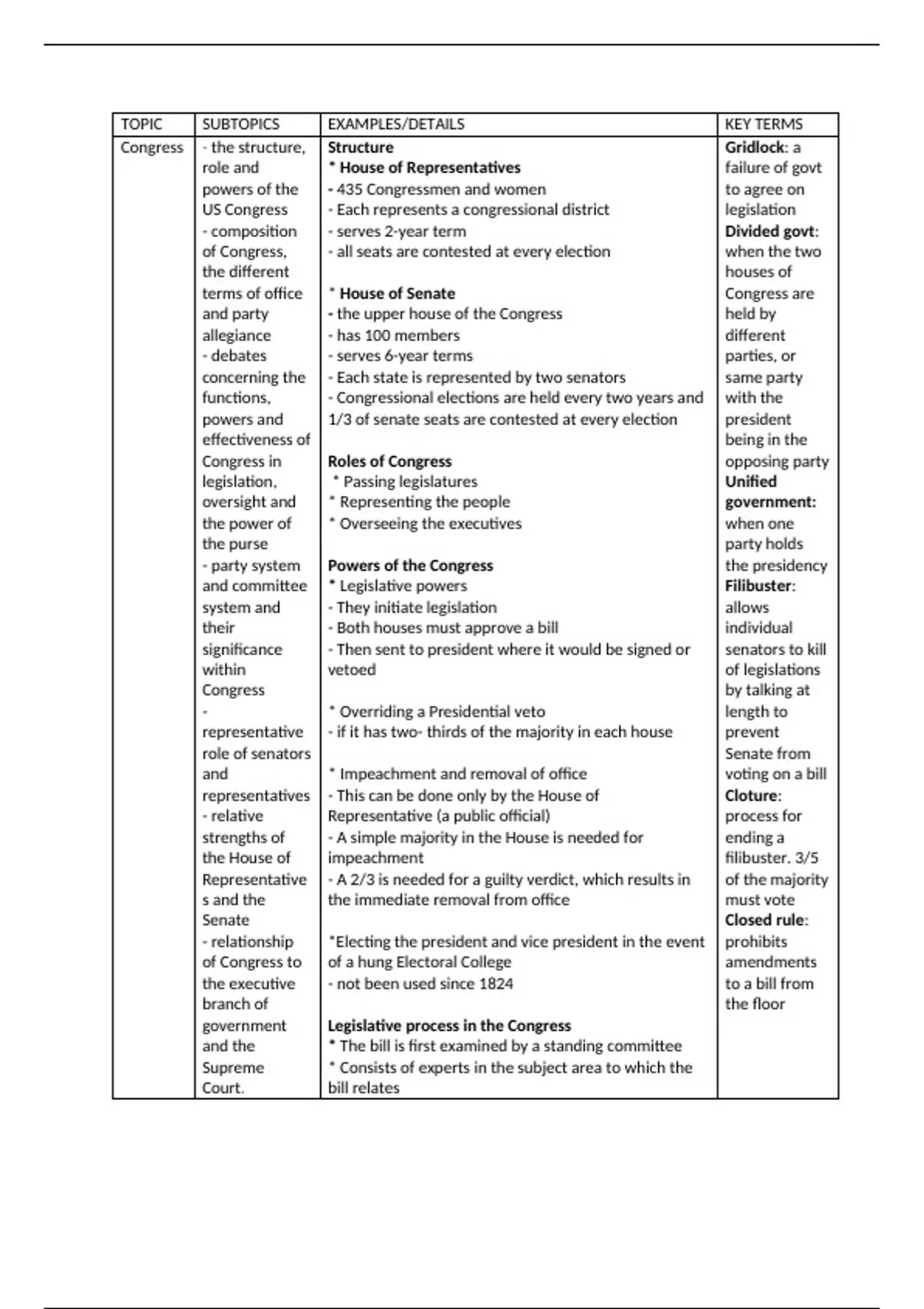 and committee * Legislative powers Filibuster: