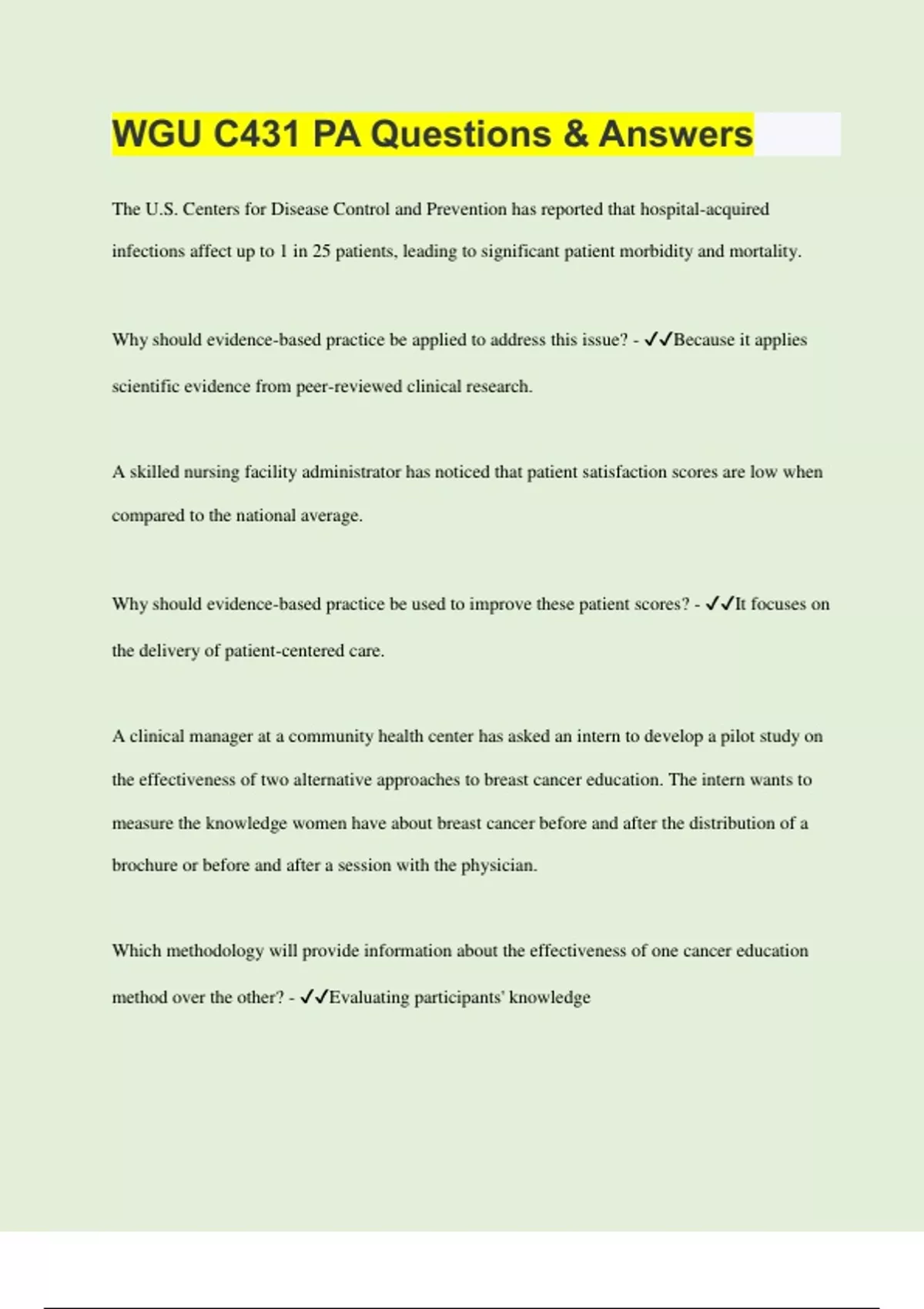 WGU C431 PA Questions & Answers | Questions with 100% Correct Answers | Verified | Latest Update | 29 Pages