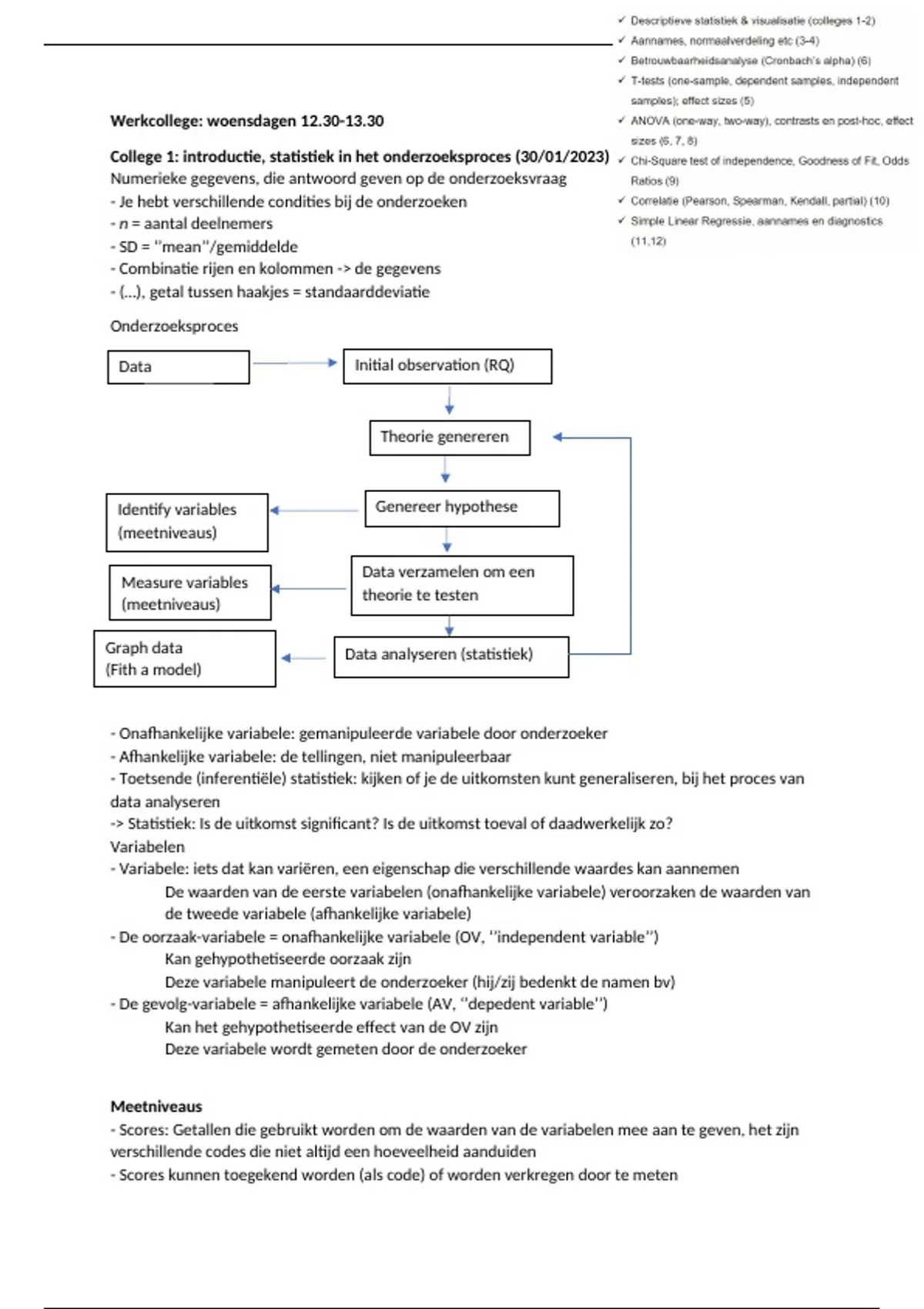 College 1: introductie, statistiek in het onderzoeksproces (30/01/2023)