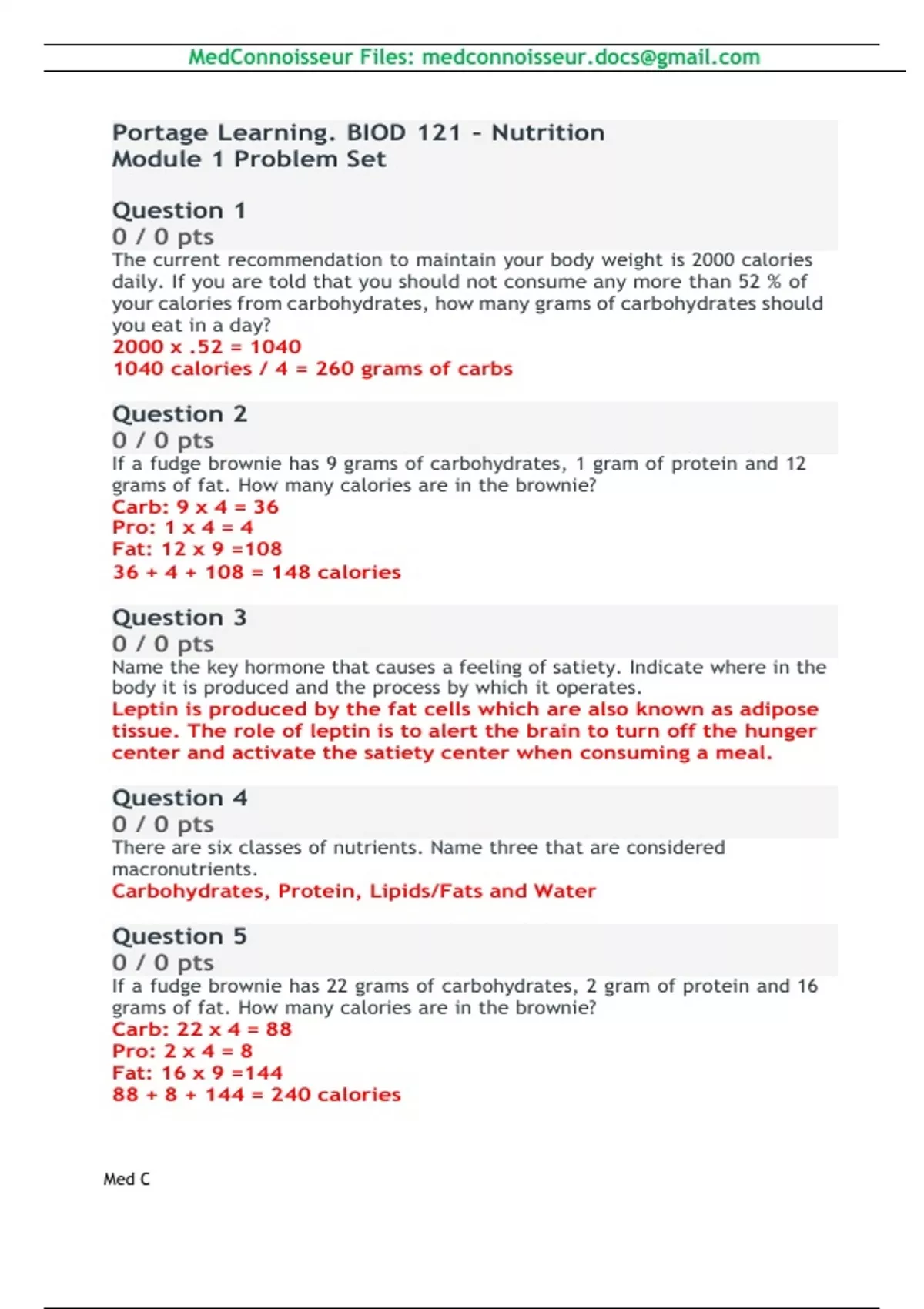 BIOD 121: Nutrition Module 1 Problem Set, Portage Learning | Latest Update & Graded A+