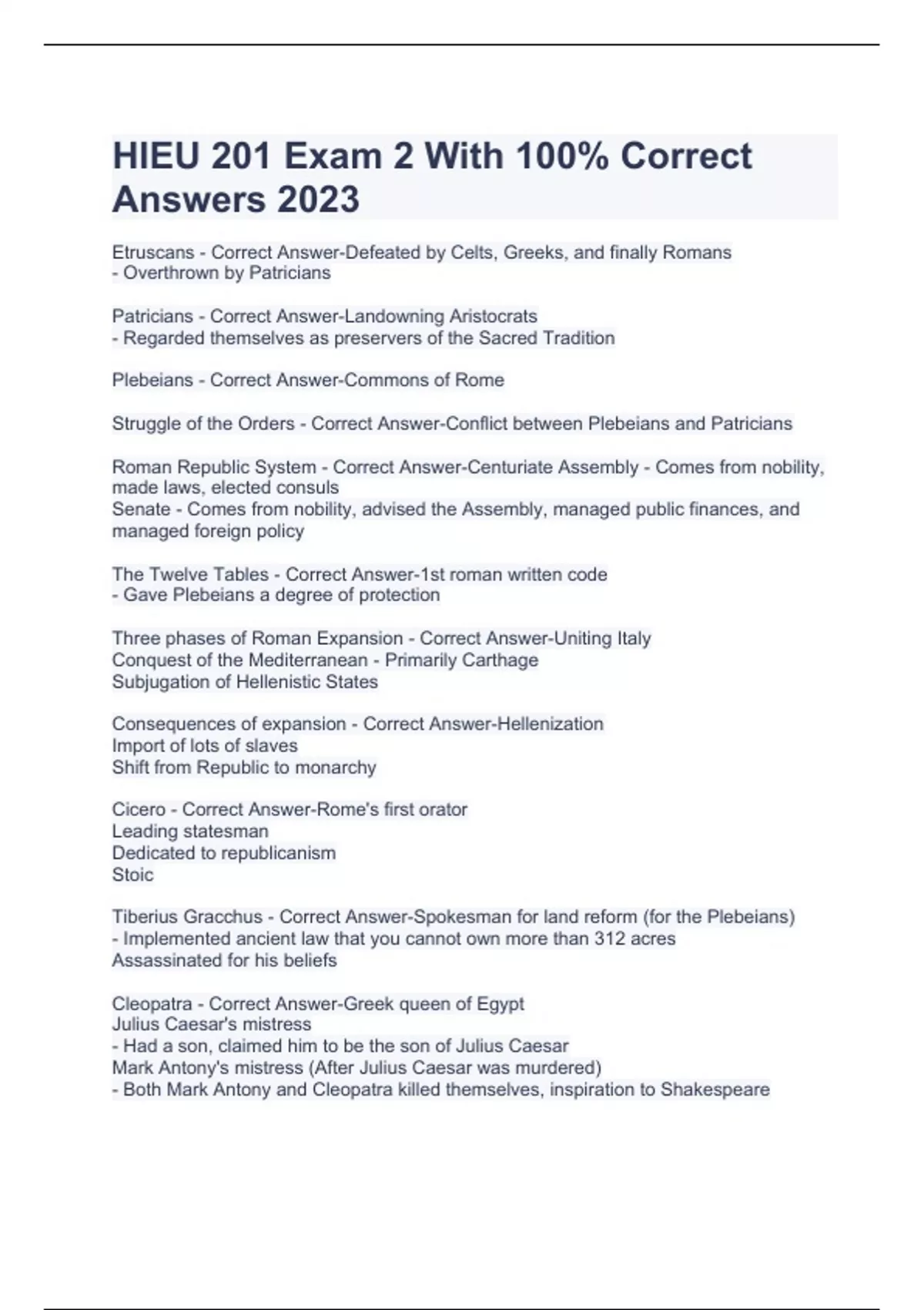 HIEU 201 Exam 2 With 100% Correct Answers 2023