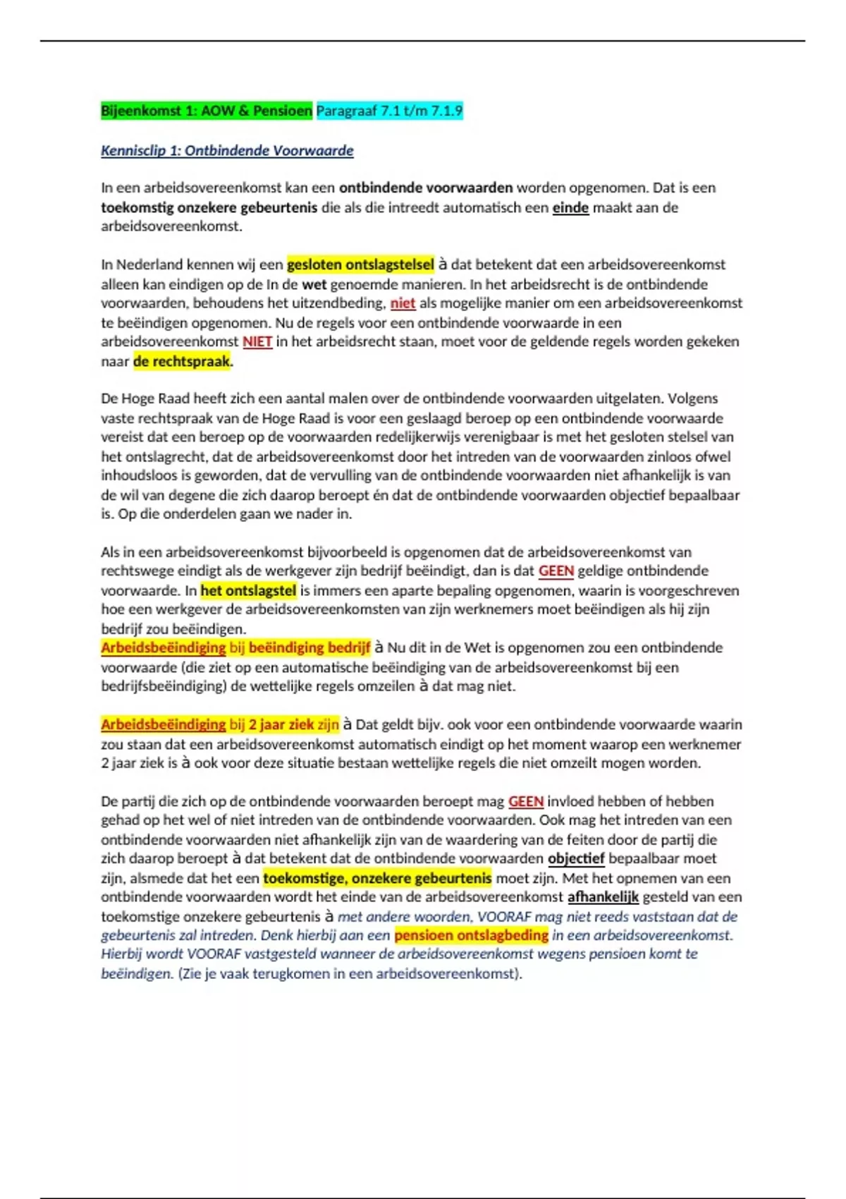 Bijeenkomst 1: AOW & Pensioen Paragraaf 7.1 t/m 7.1.9
