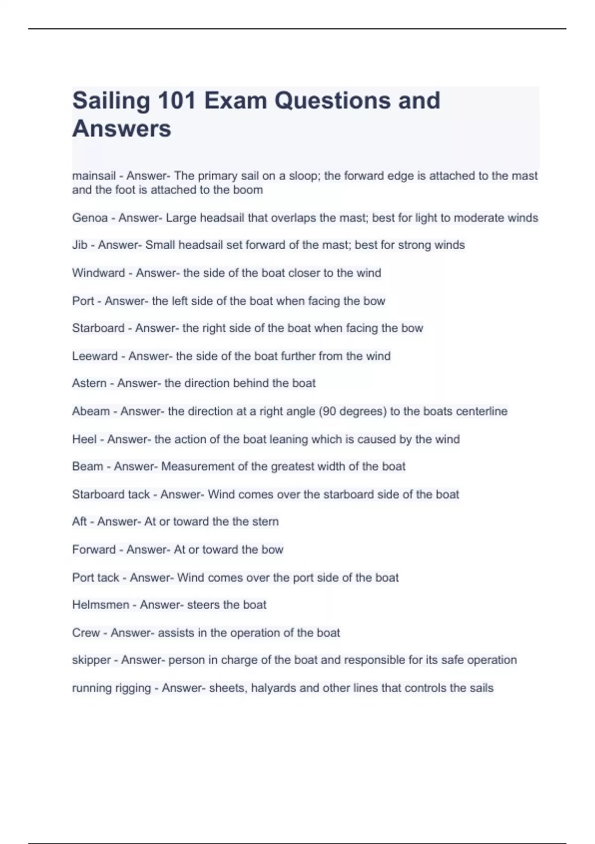 Sailing 101 Exam Questions and Answers