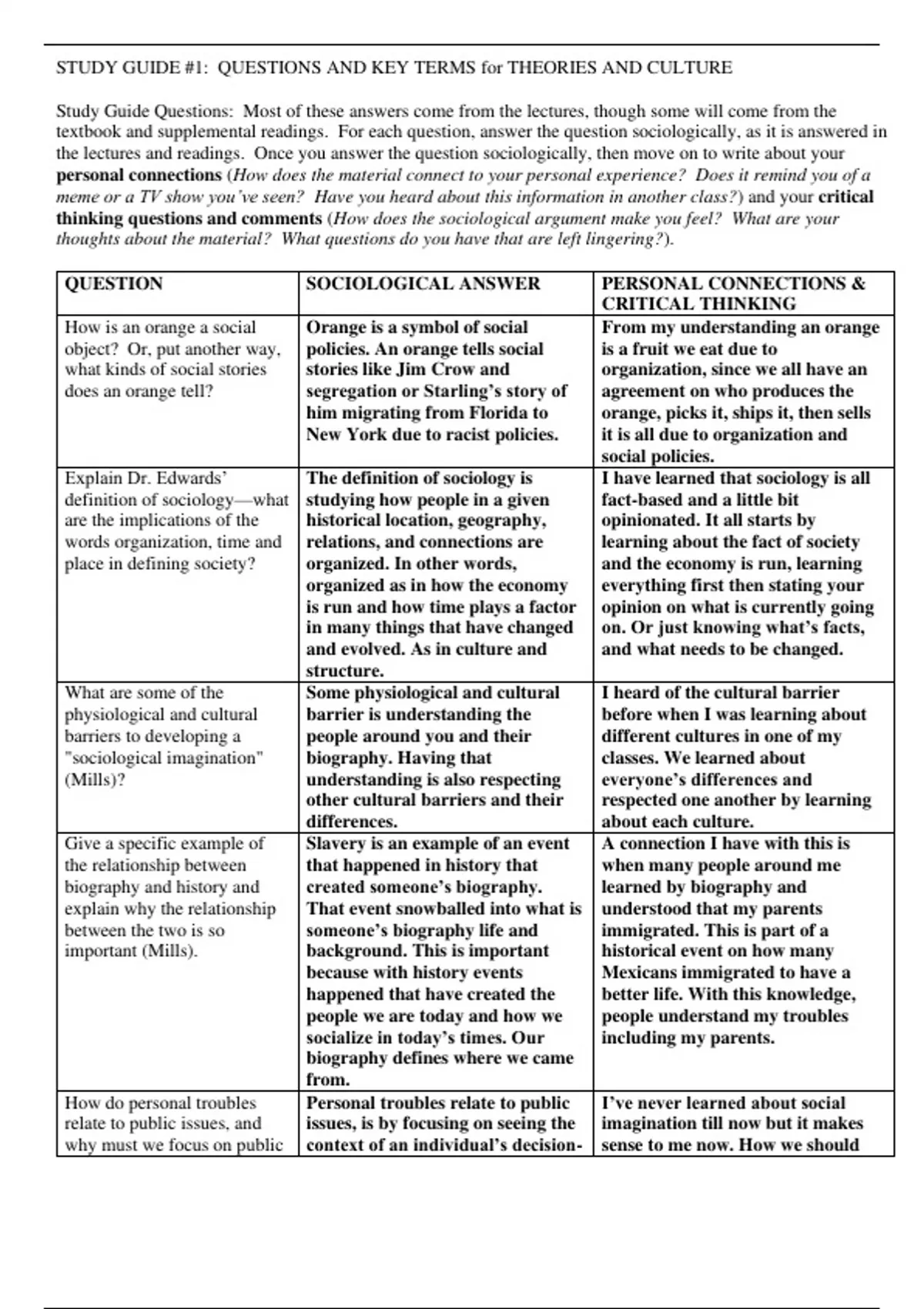 In this Sociology 101 class, Dr. Edwards assigns us three study guides that are worth points. All three are in-depth answers that can be found in her weekly review.