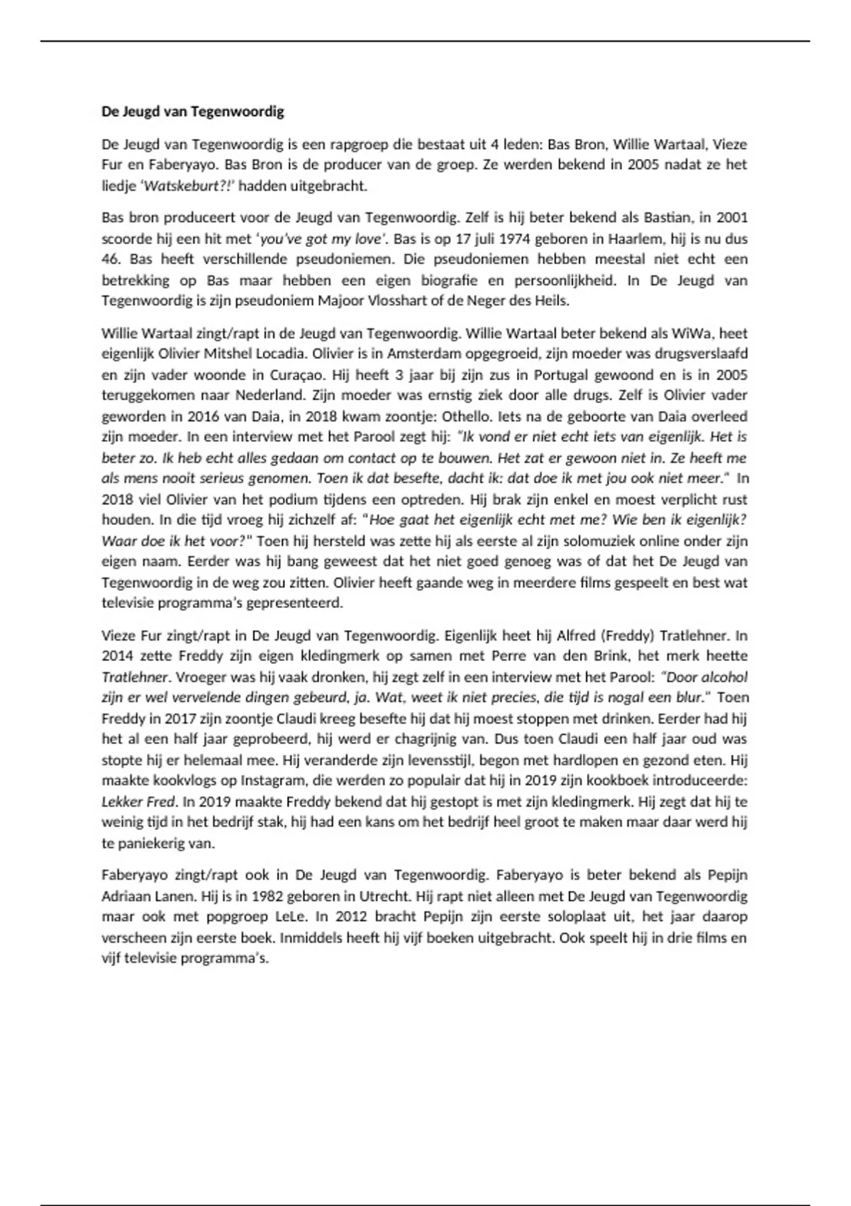 De Jeugd van Tegenwoordig is een rapgroep die bestaat uit 4 leden: Bas Bron, Willie Wartaal, Vieze