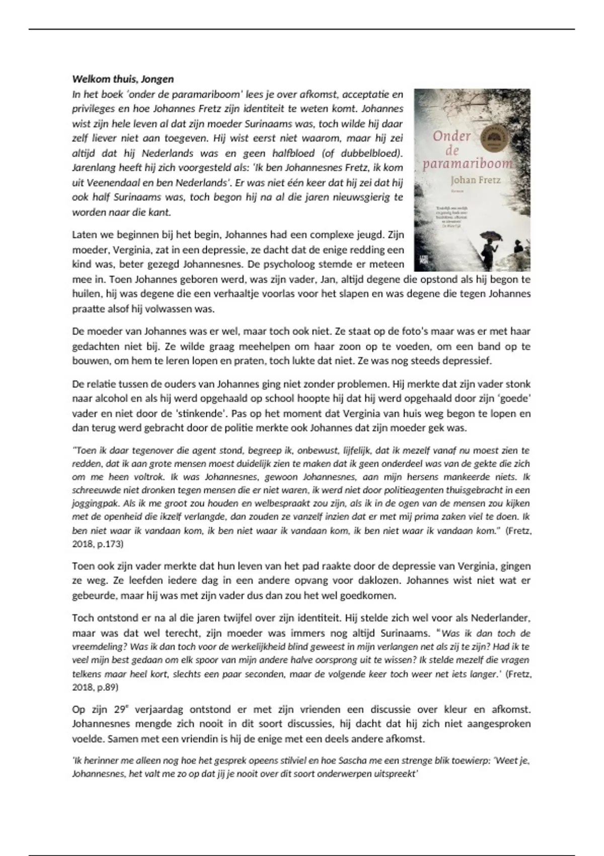 privileges en hoe Johannes Fretz zijn identiteit te weten komt. Johannes