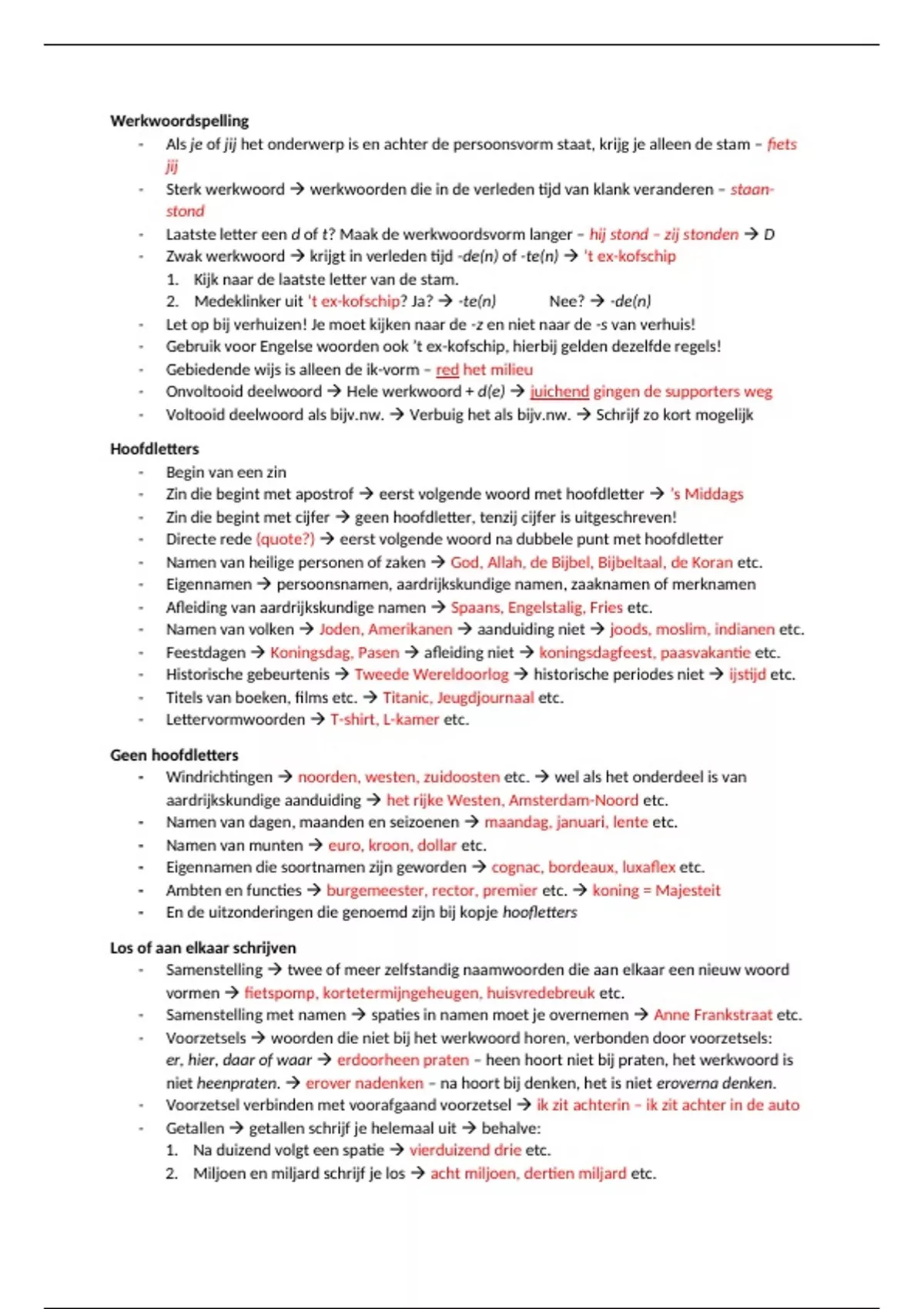 Een uitgebreid overzicht van alle regels rondom het Nederlandse spellen en formuleren. Bij alle regels zijn ook voorbeelden en uitzonderingen (als die er zijn) benoemd, zo wordt het extra duidelijk. Ik heb dit document gemaakt in V4 voor een spelling en formuleren toets, ook in V5 en V6 heb ik dit document nog geregeld even doorgelezen voor toetsen en het examen. Hopelijk heb je er iets aan!