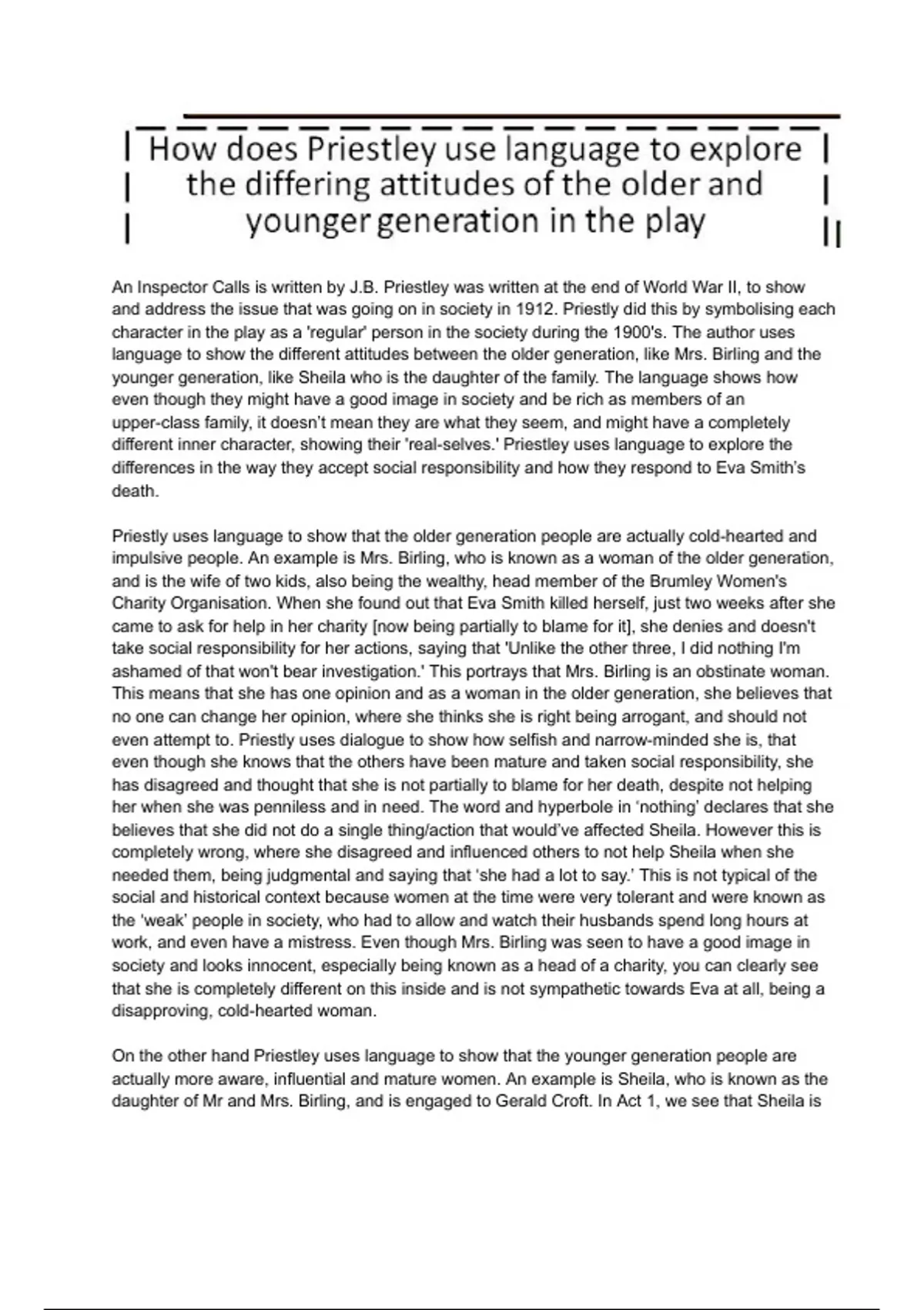 and address the issue that was going on in society in 1912. Priestly did this by symbolising each