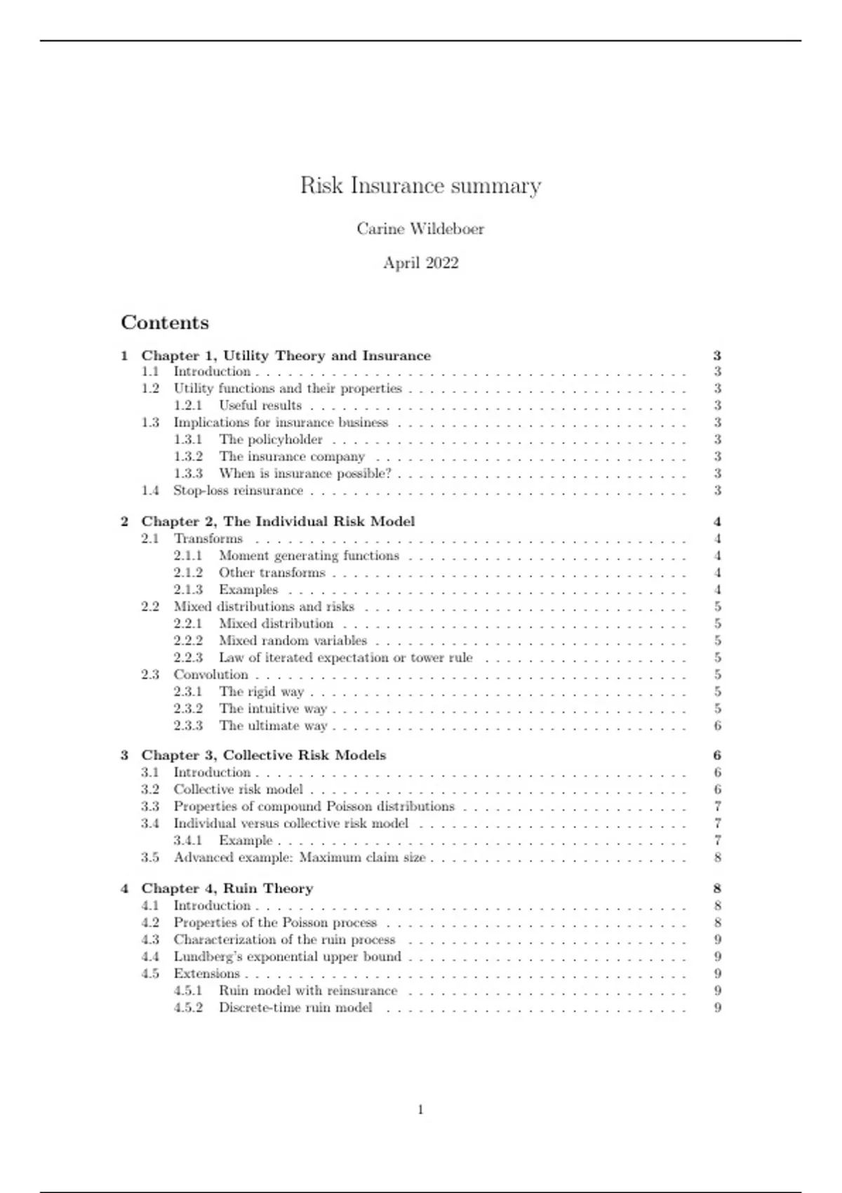 1.4 Stop-loss reinsurance . . . . . . . . . . . . . . . . . . . . . . . . . . . . . . . . . . . 3