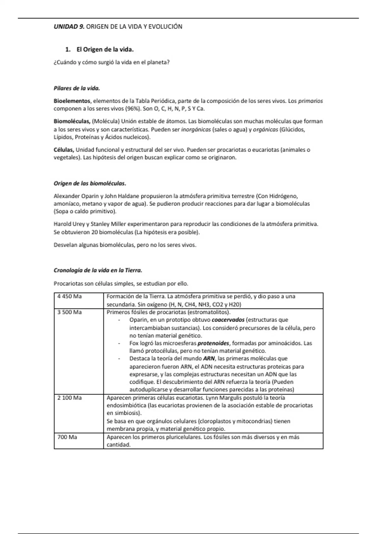 , UNIDAD 9. ORIGEN DE LA VIDA Y EVOLUCIÓN