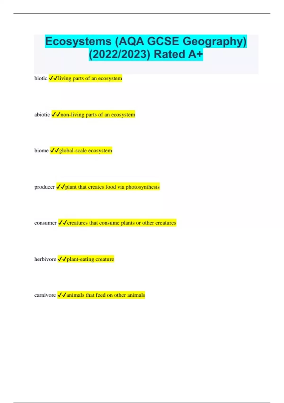 Ecosystems (AQA GCSE Geography) (2022/2023) Rated A+