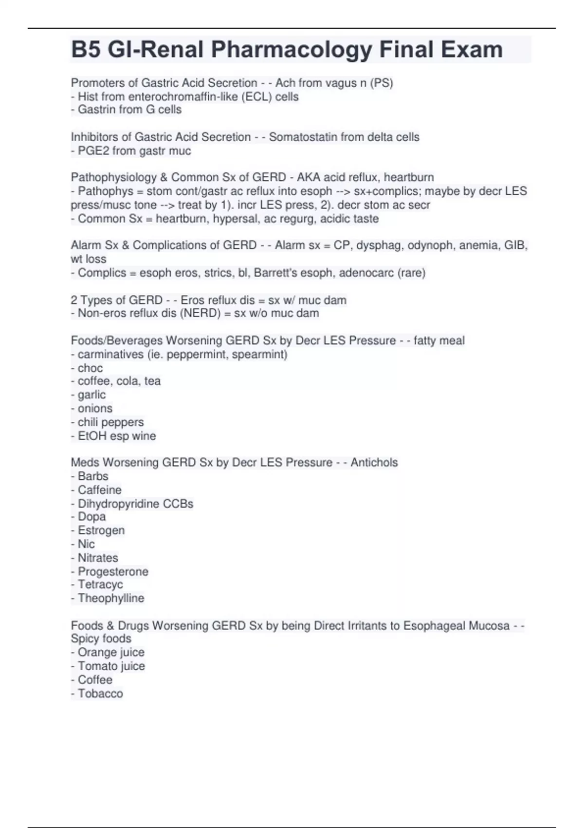 B5 GI-Renal Pharmacology Final Exam.