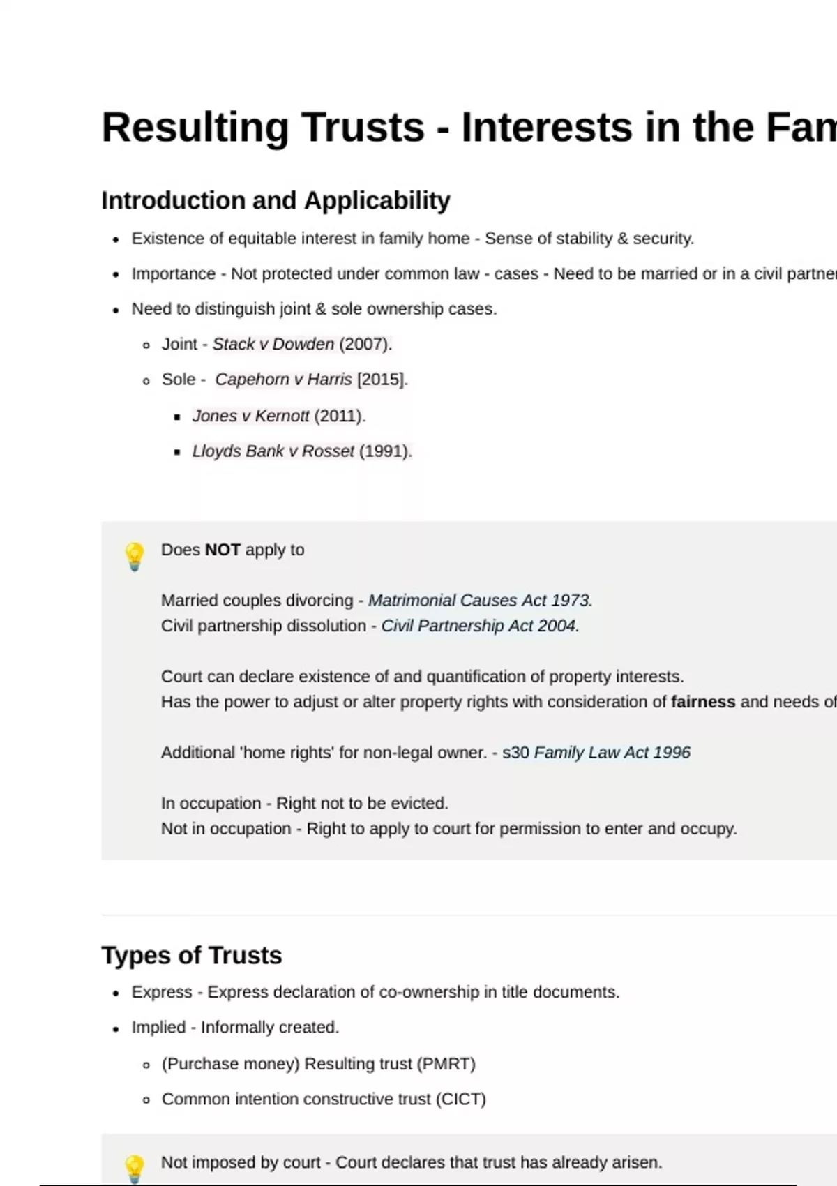 Resulting Trusts - Interests in the Fam