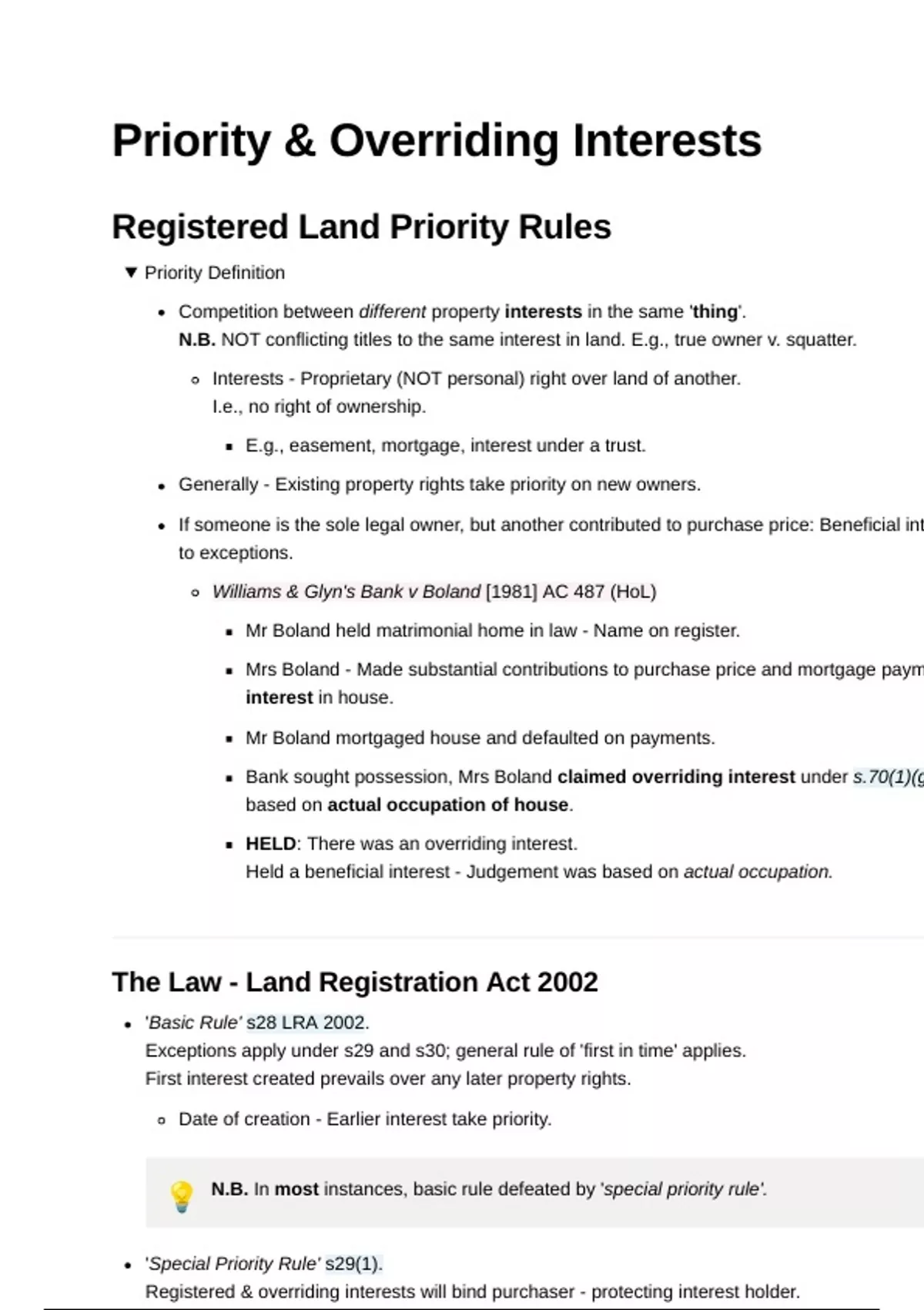 💡 N.B. In most instances, basic rule defeated by 'special priority rule'.