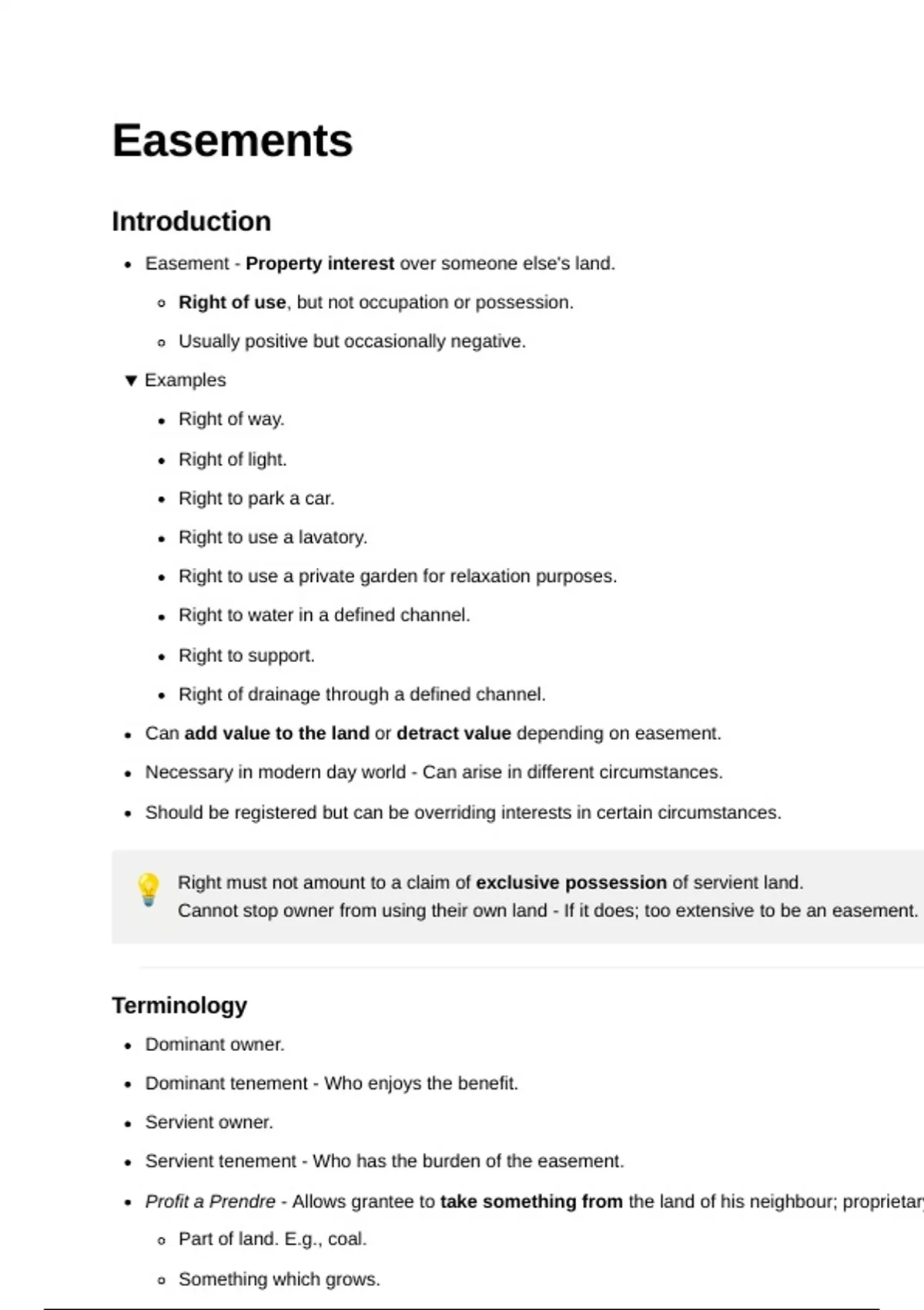 💡 Right must not amount to a claim of exclusive possession of servient land.