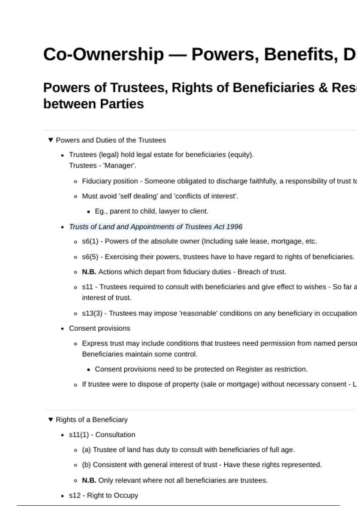 Powers of Trustees, Rights of Beneficiaries & Reso