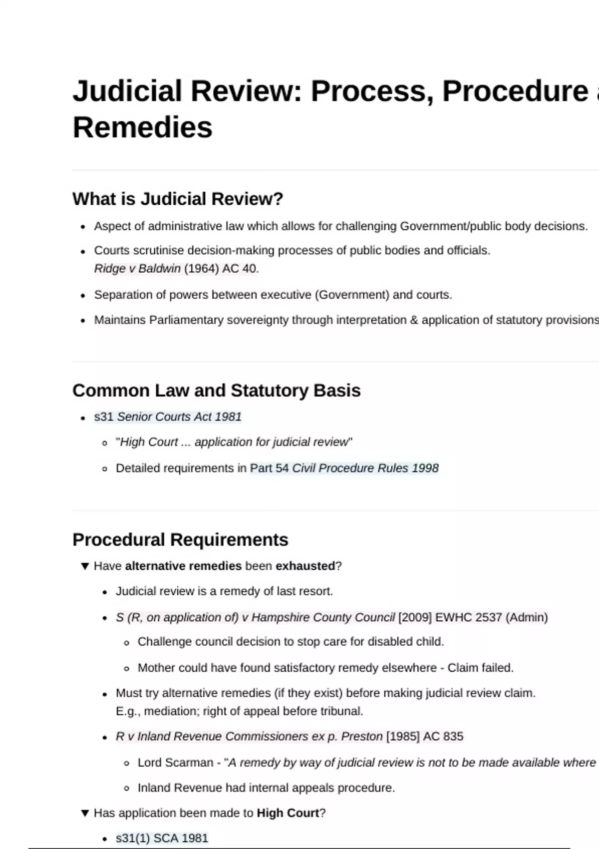 Judicial Review: Process, Procedure a