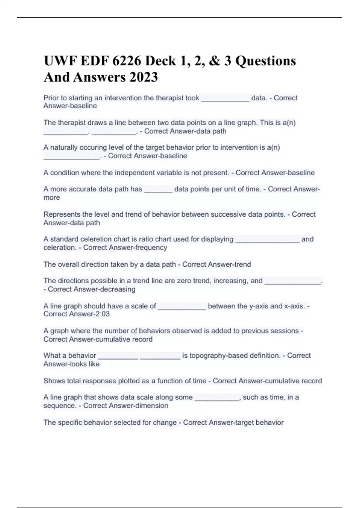 UWF EDF 6226 Deck 1, 2, & 3 Questions And Answers 2023