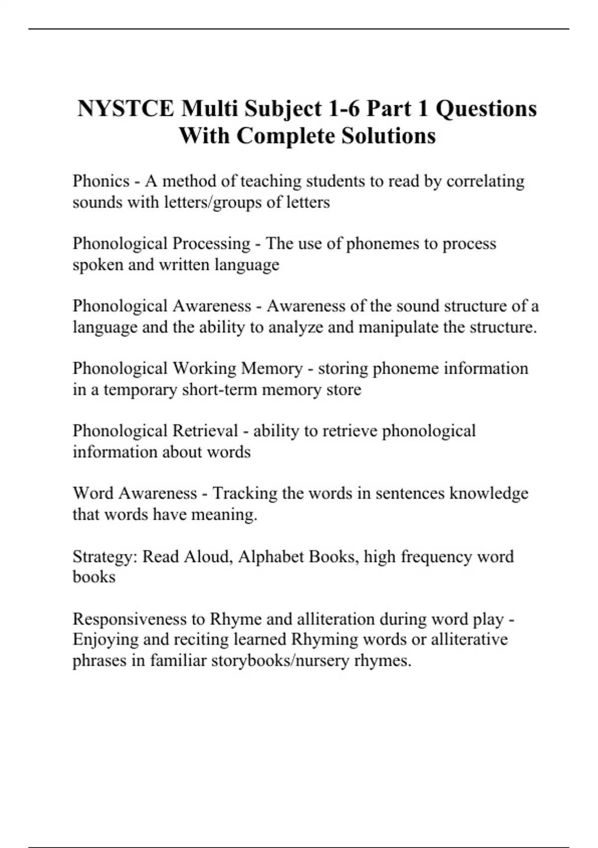 NYSTCE Multi Subject 1-6 Part 1 Questions With Complete Solutions