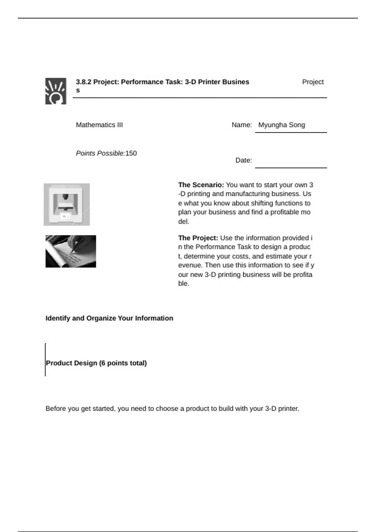 n the Performance Task to design a produc