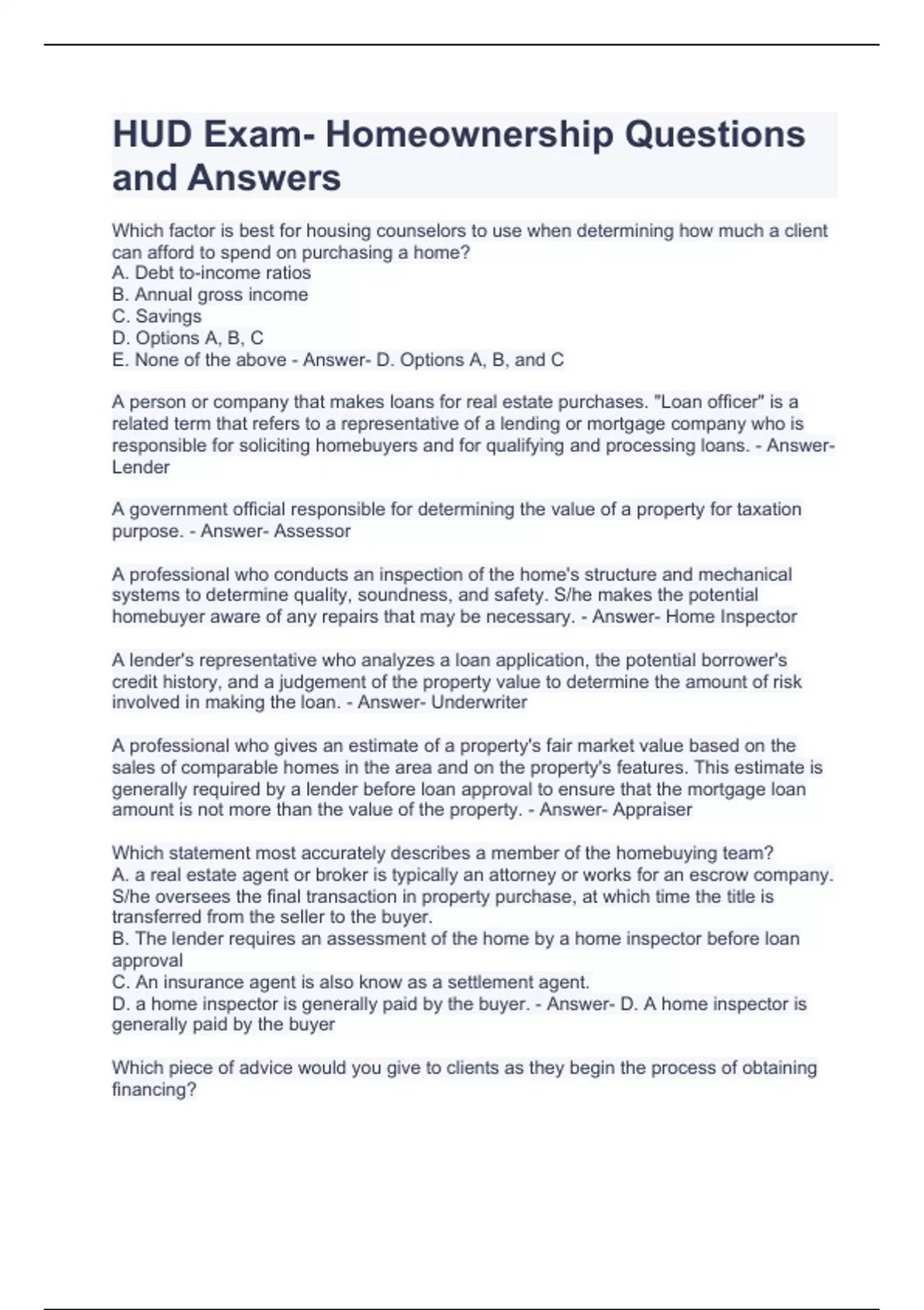 Which factor is best for housing counselors to use when determining how much a client can afford to spend on purchasing a home? A. Debt to-income ratios