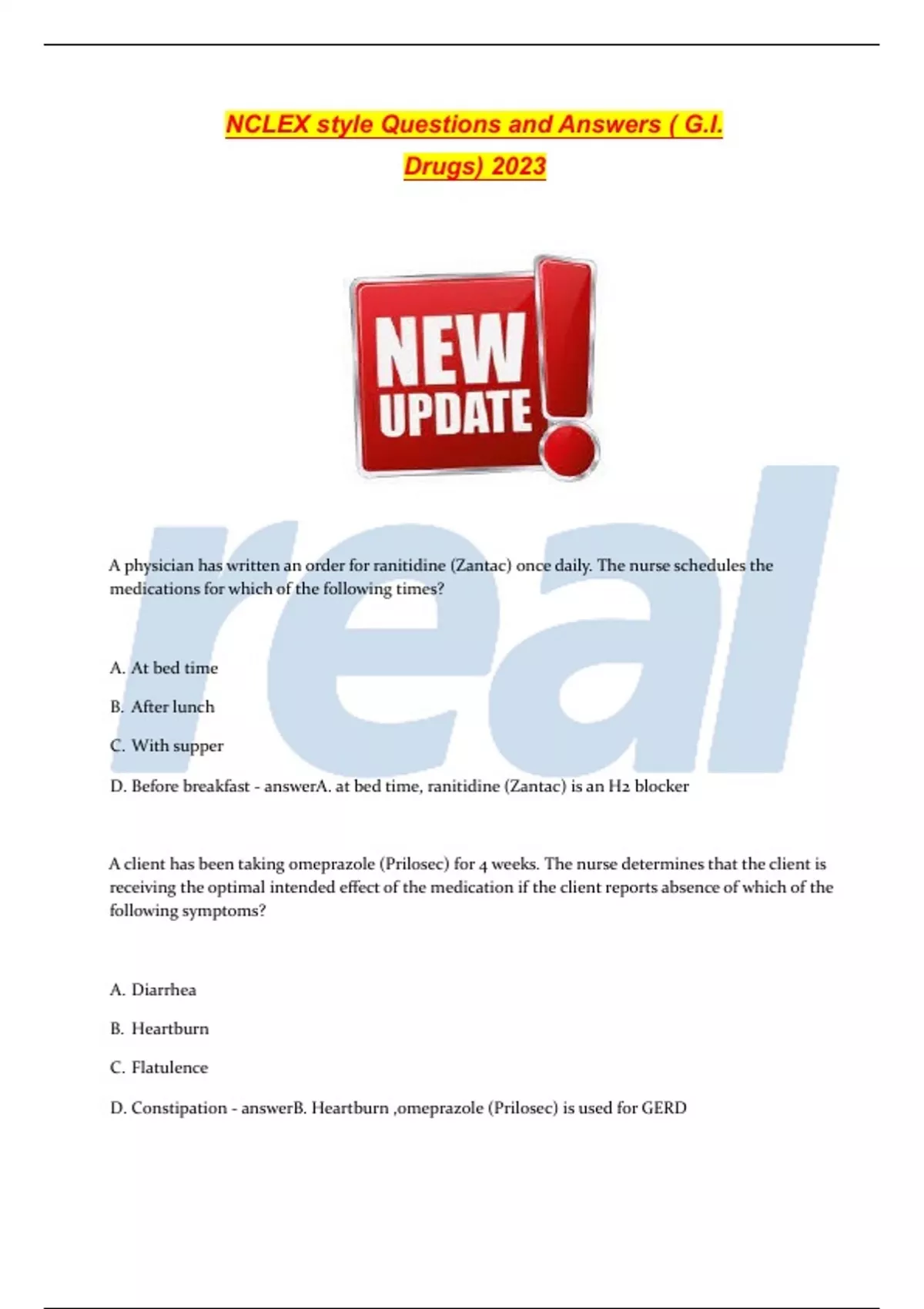 NCLEX style Questions and Answers ( G.I. Drugs) 2023NCLEX style Questions and Answers ( G.I. Drugs) 2023