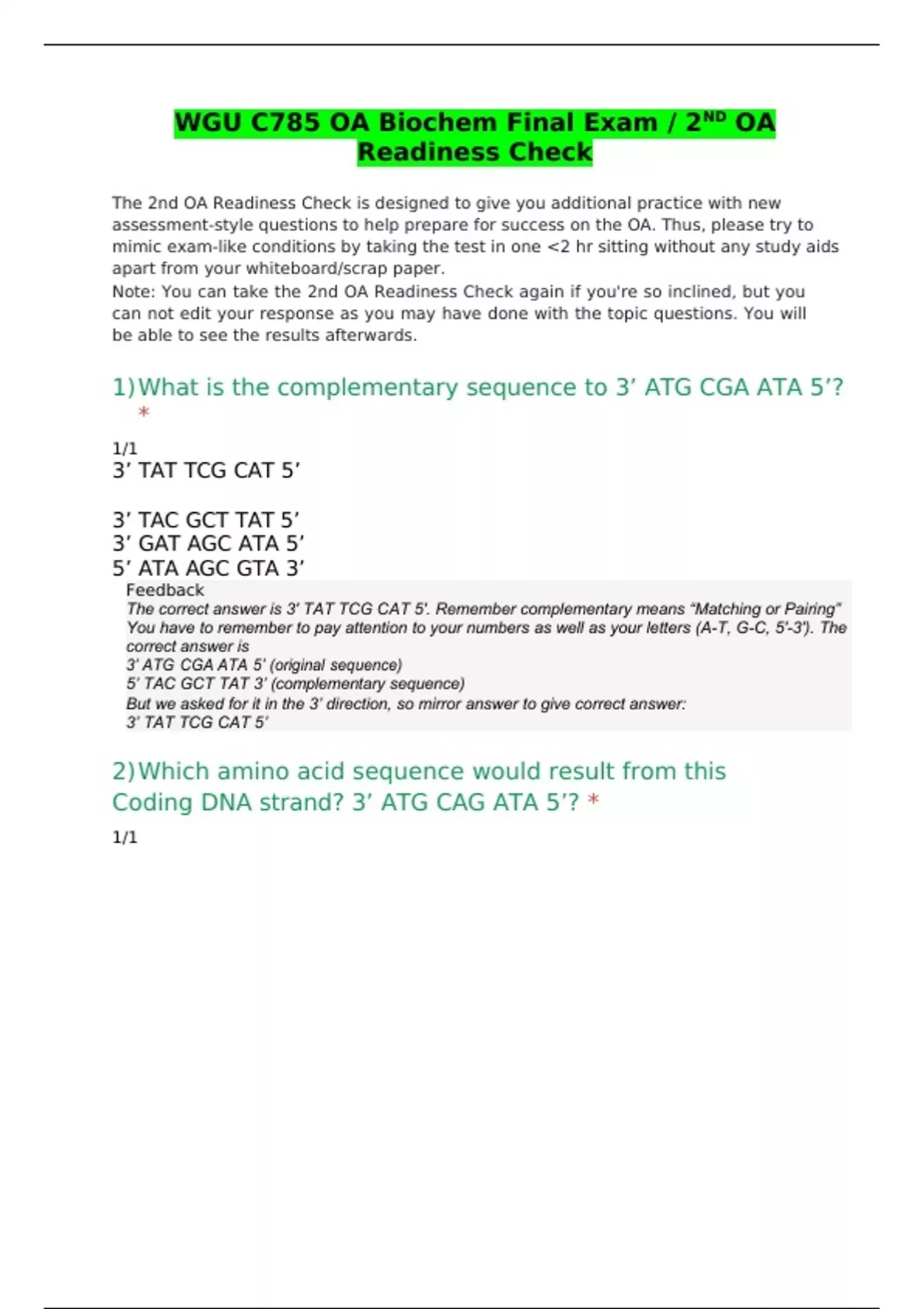 WGU C785 OA Biochem Final Exam / 2ND OA Readiness Check