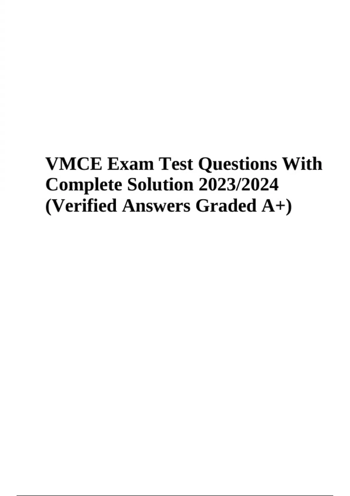 VMCE Exam Test Questions With Verified Answers Graded A+